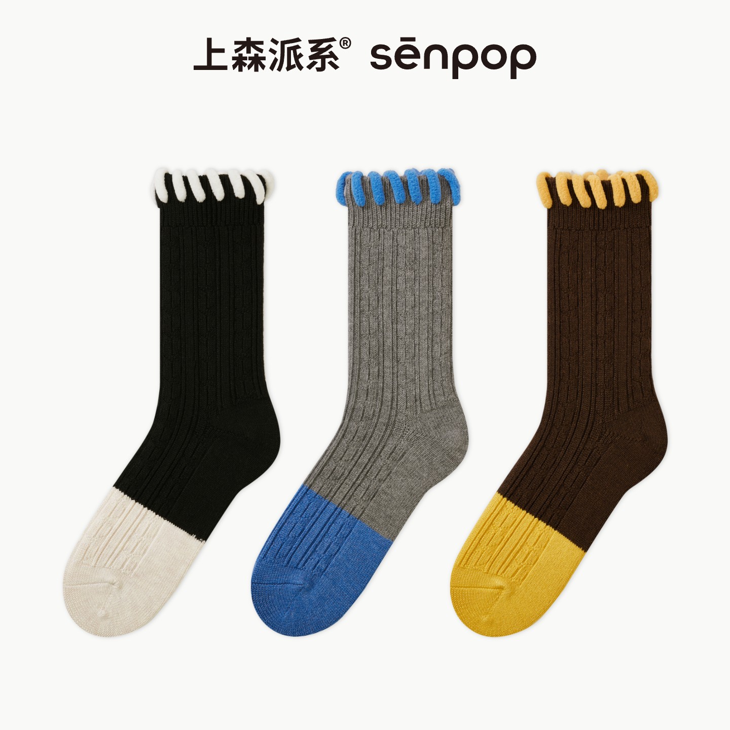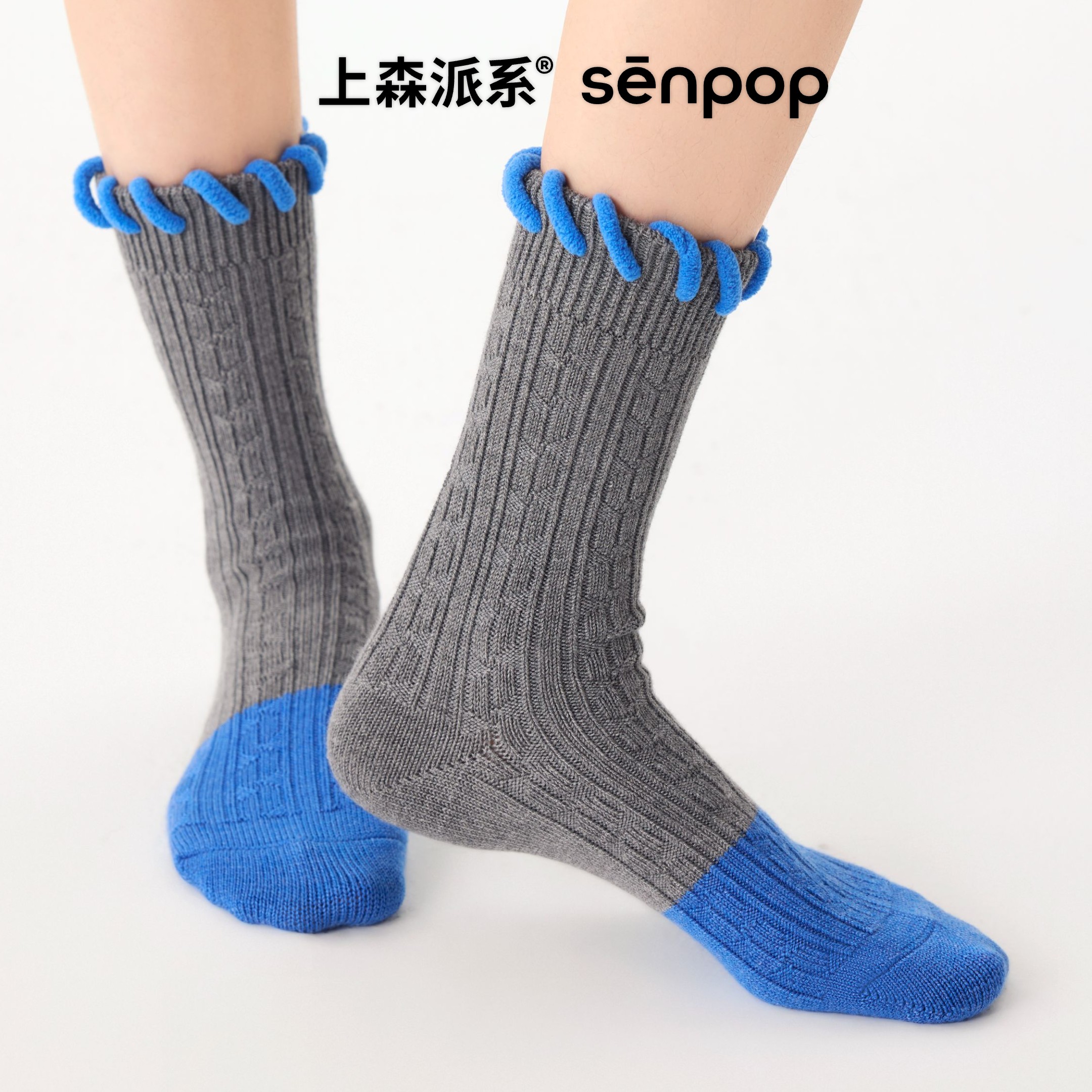 月子长袜 乐福鞋 木耳花边堆堆袜子女秋冬季 黑色纯棉中筒袜配小皮鞋