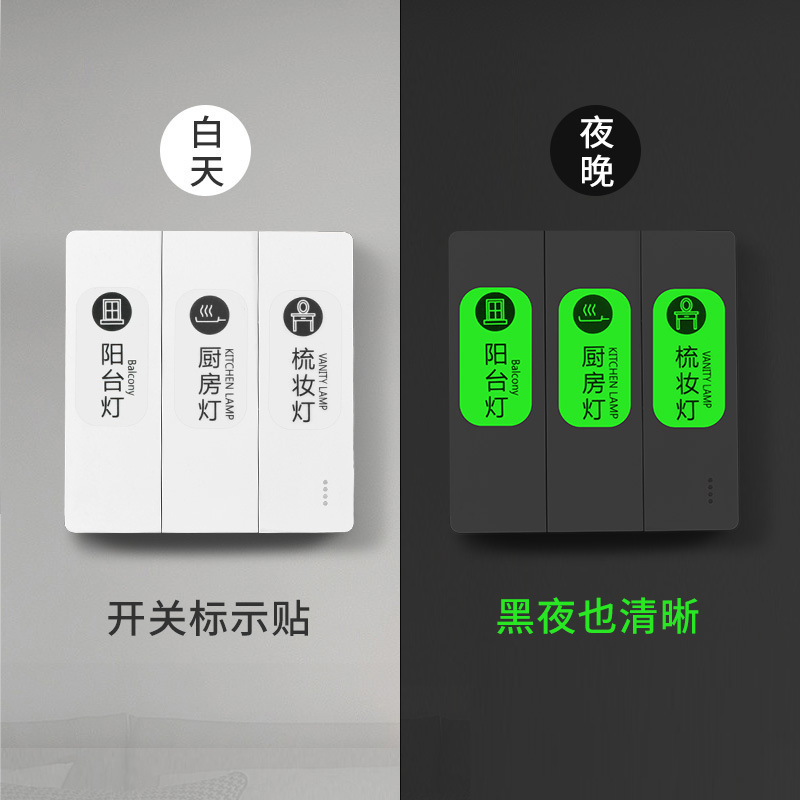 灯开关标示贴家用夜光标签指示创意面板开关装 饰贴纸电表箱标识贴