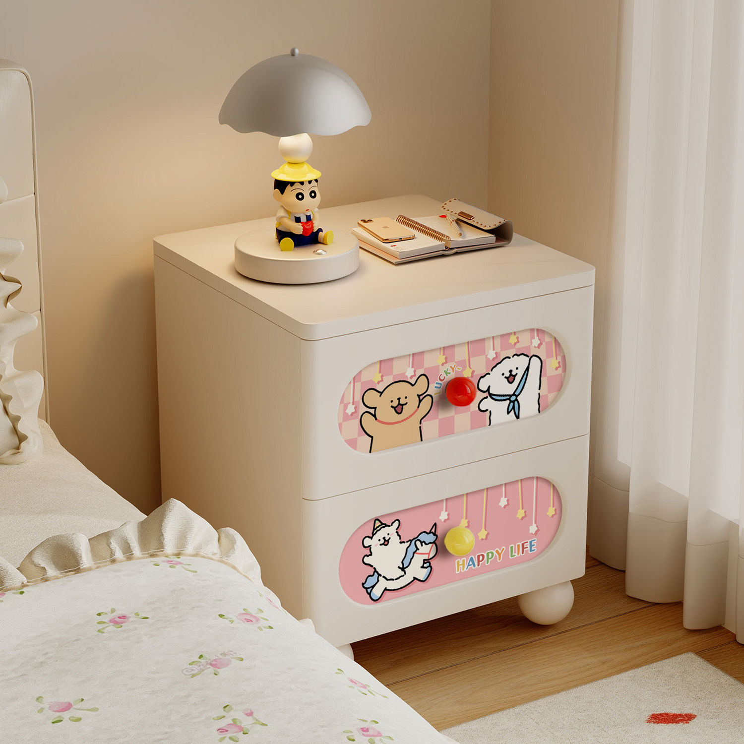 奶油风床头柜现代简约小型床边柜儿童卧室床头置物架收纳储物柜子