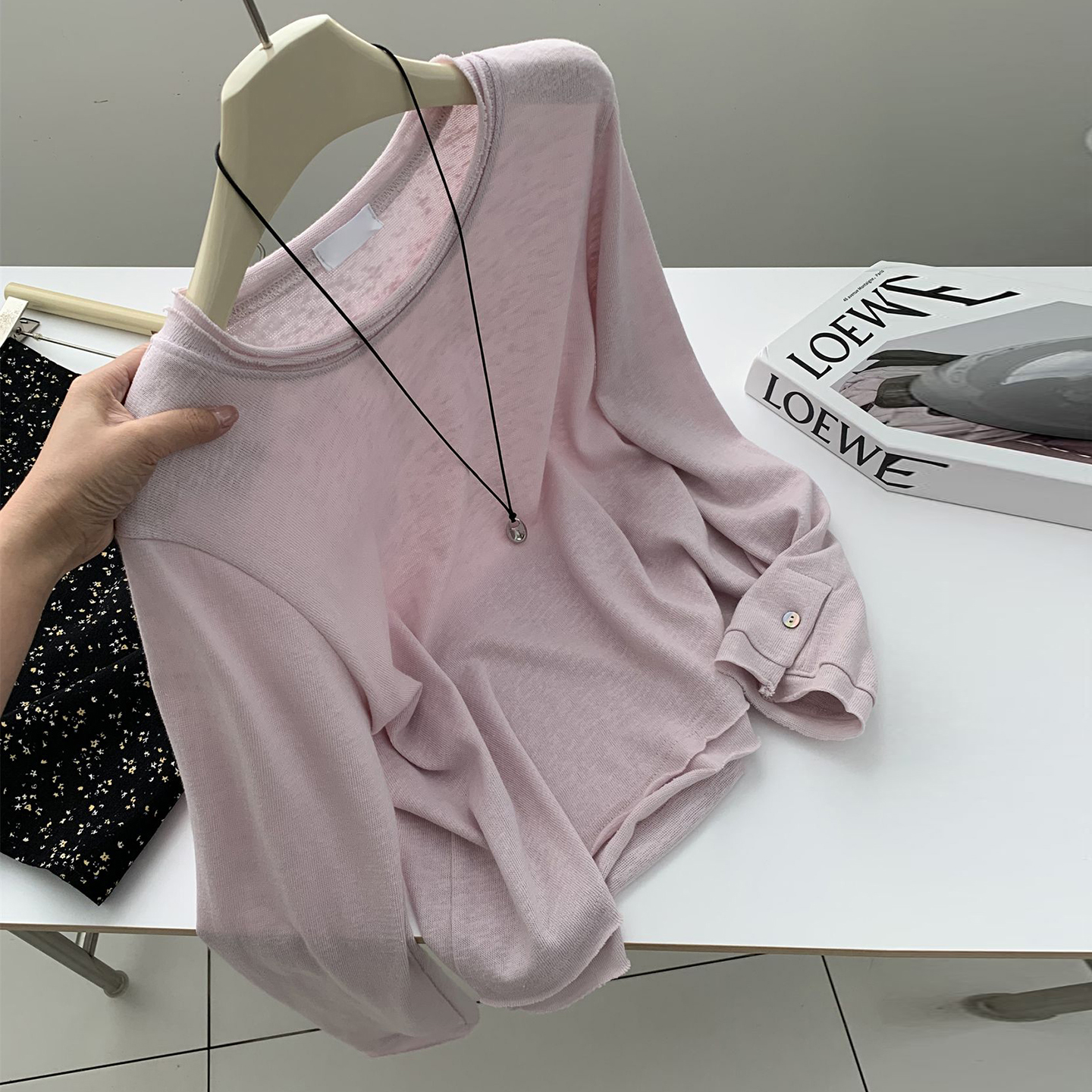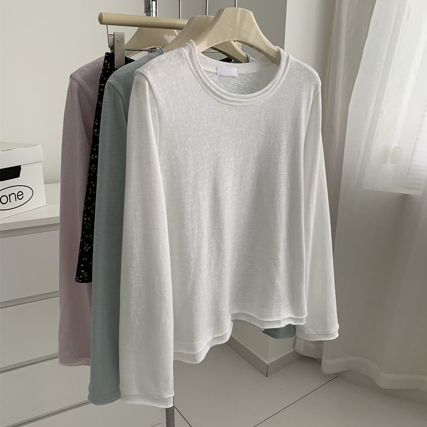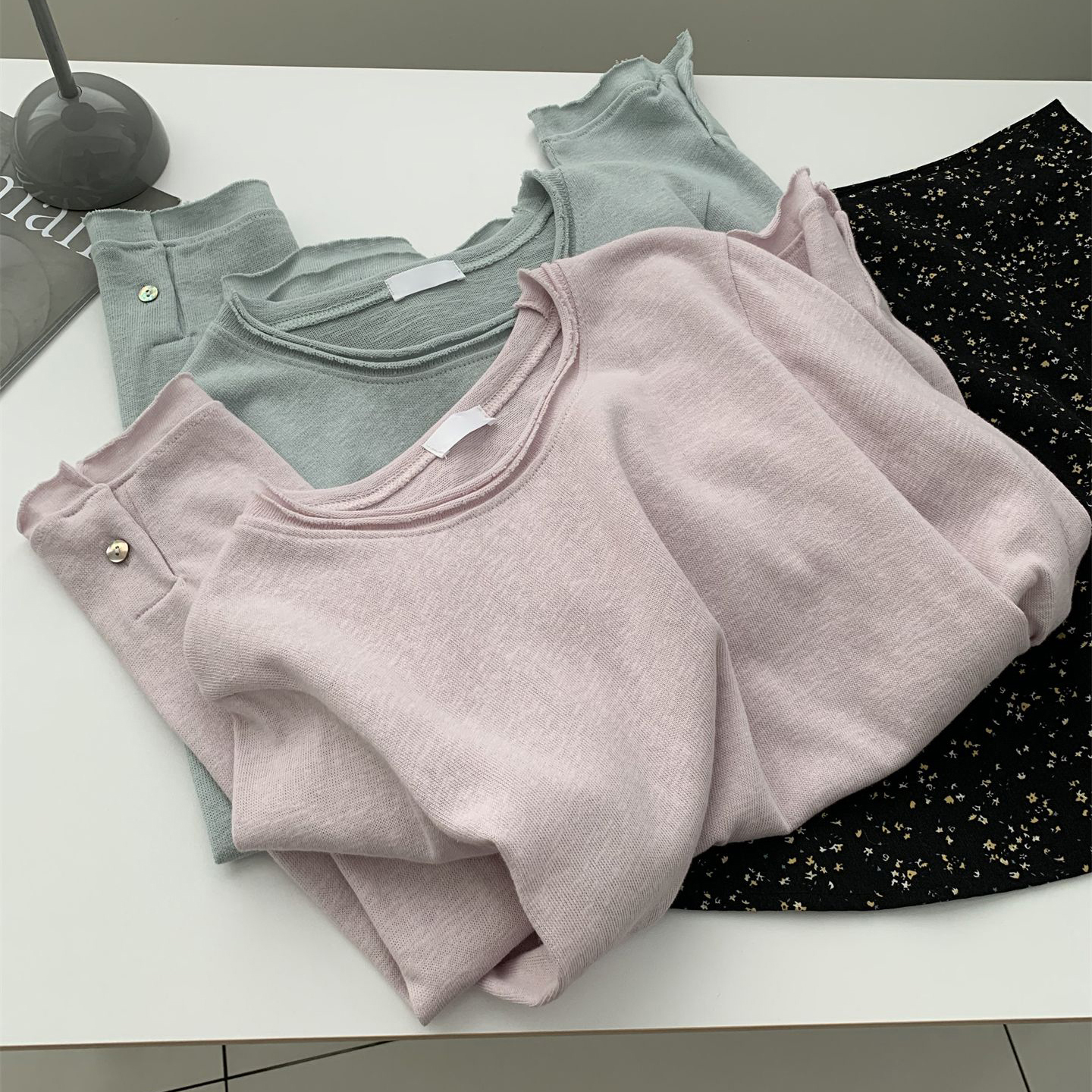 韩版 女早秋2025新款 宽松内搭外穿T恤上衣服 打底衫 卷边设计感长袖