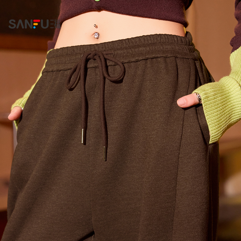 子 高腰垂感秋冬直筒休闲加绒裤 棕咖色雪尼尔阔腿裤 女春秋2025新款