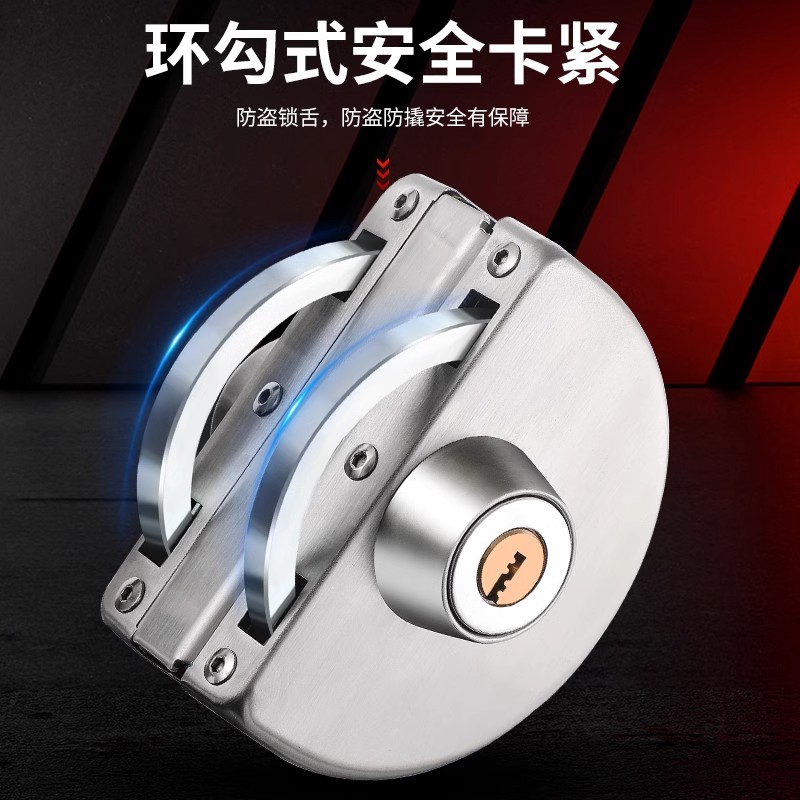 双开门玻璃门锁单门免开孔商铺玻璃锁地锁推拉门地锁插销无框锁