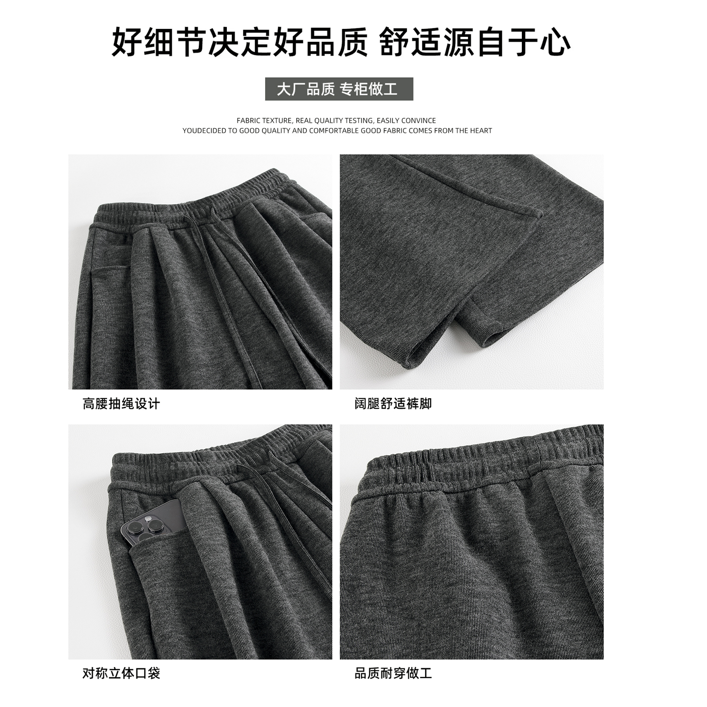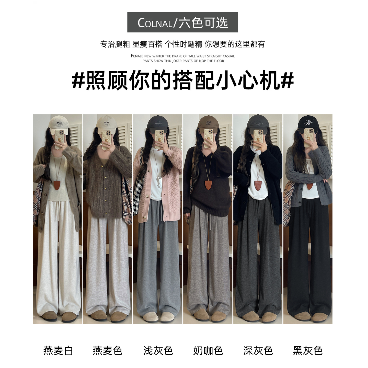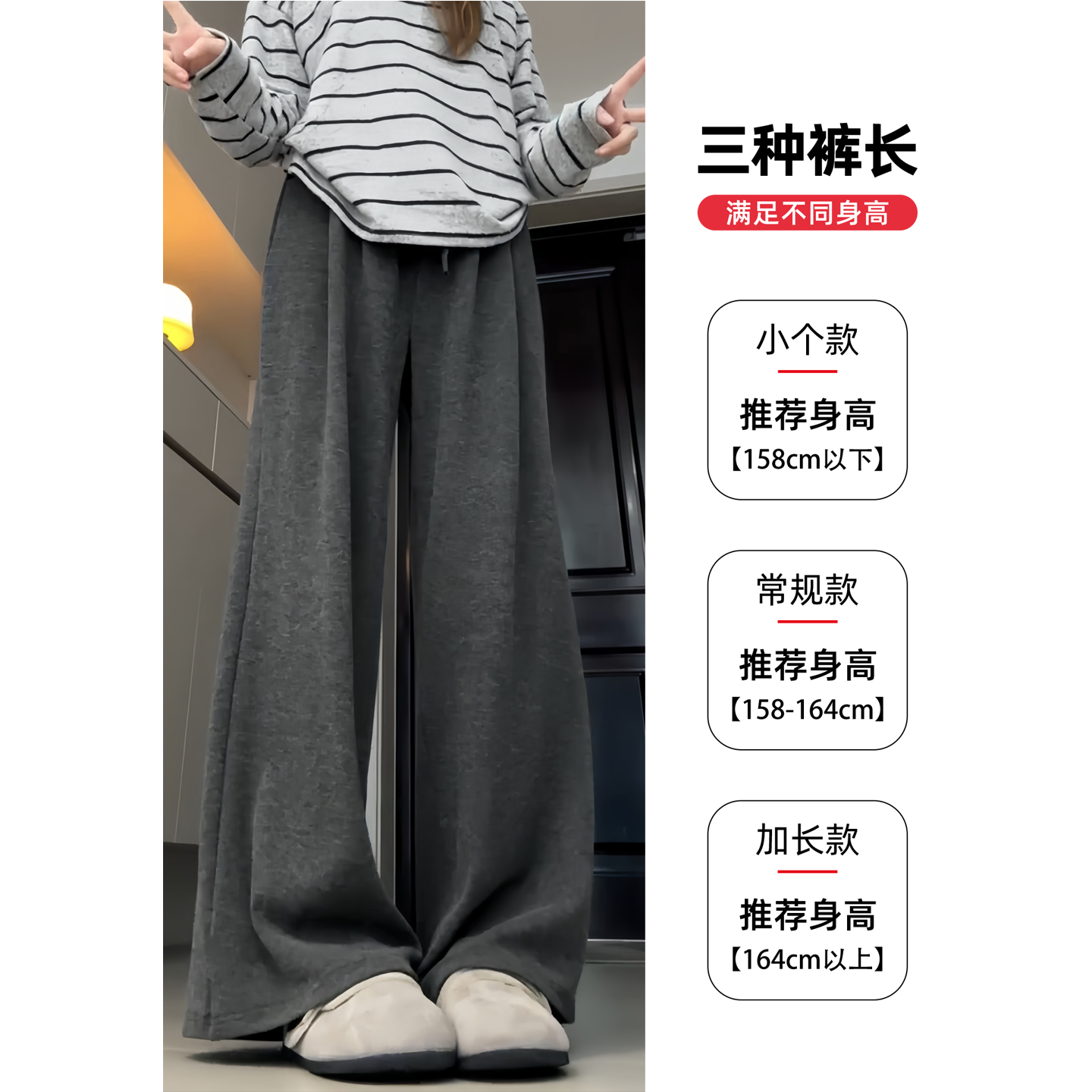 秋冬加绒高腰慵懒垂坠感松弛风运动阔腿裤 灰色糯米裤 子女2025新款