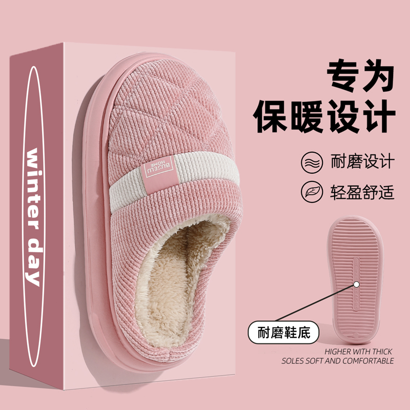 家居室内中老年毛毛加绒棉拖男 2025新款 老人防滑棉拖鞋 女士秋冬季