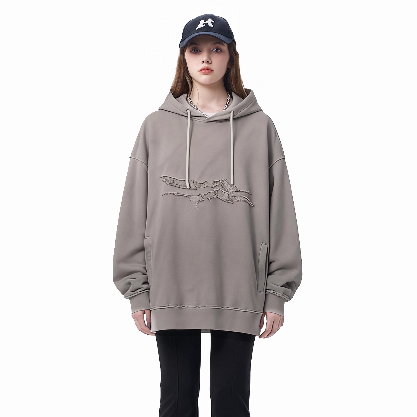 JHYQ美式 高街哥特J字母logo基础400G重磅连帽卫衣男宽松针织帽衫