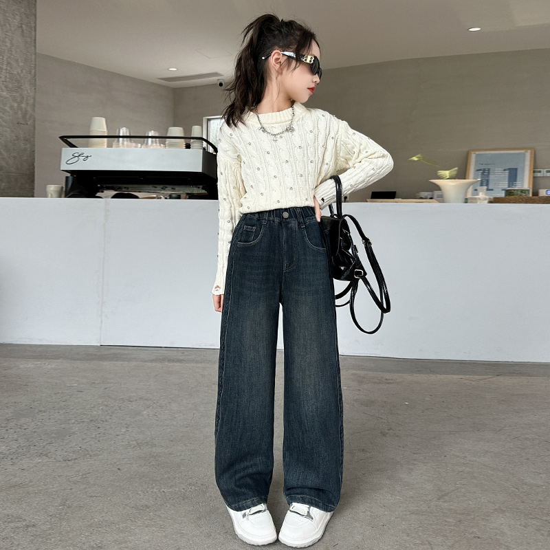 女童裤 儿童裤 子2025秋冬新款 牛仔裤 子 中大童直筒阔腿裤 植木童装