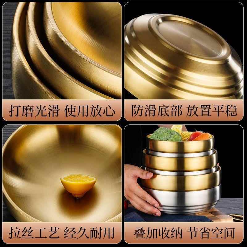 韩式 冷面碗沙拉碗不锈钢食品级双层防烫特厚拌饭碗泡面碗冷面料理