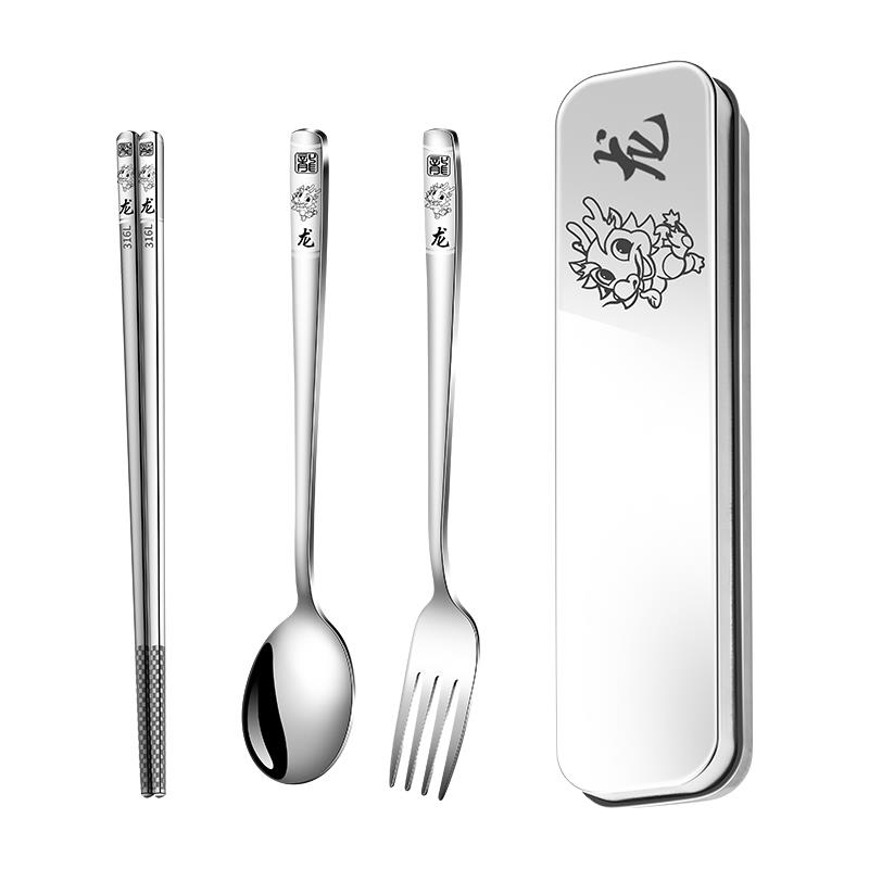 可折叠勺子筷子套装 304不锈钢折叠餐具三件套户外旅行便携式 套装