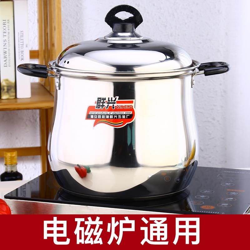 不锈钢家用特高锅鼓型汤锅加厚煲汤熬粥蒸煮炖大容量高汤锅电磁炉