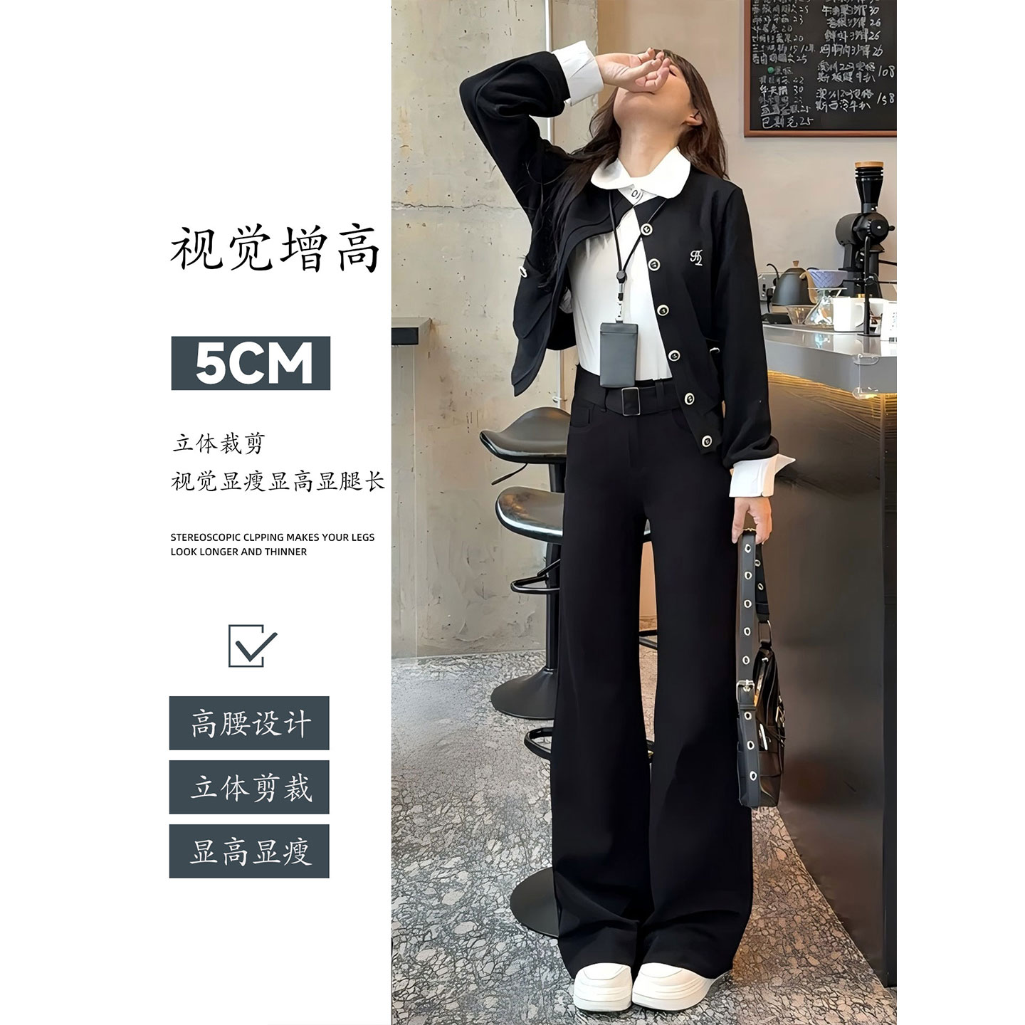 小个子高腰弹力显瘦加绒喇叭裤 新款 子 女秋季 黑色不贴腿微喇牛仔裤