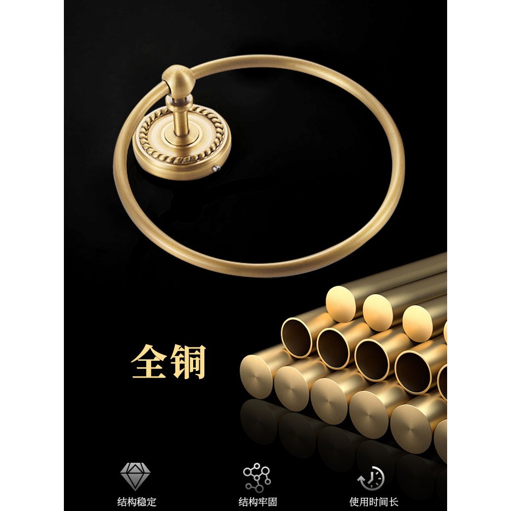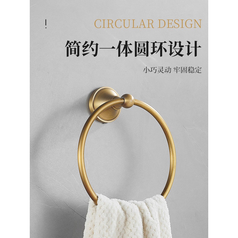 仿古全铜毛巾环免打孔卫生间圆挂环欧式 浴室毛巾圈擦手巾专用架子
