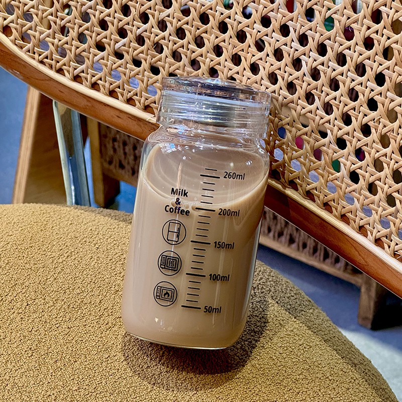 牛奶杯耐高温玻璃学生便携可微波豆浆杯子家用带盖刻度杯密封水瓶
