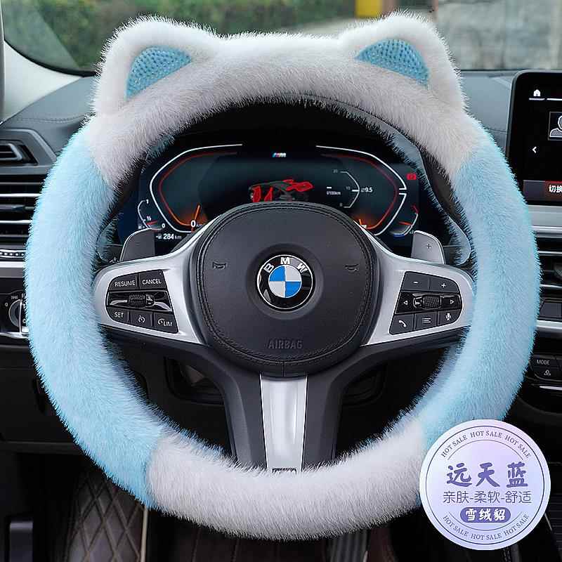 毛绒卡通可爱女款 汽车方向盘套冬季 保暖通用彩钻毛绒把套 新款 韩版