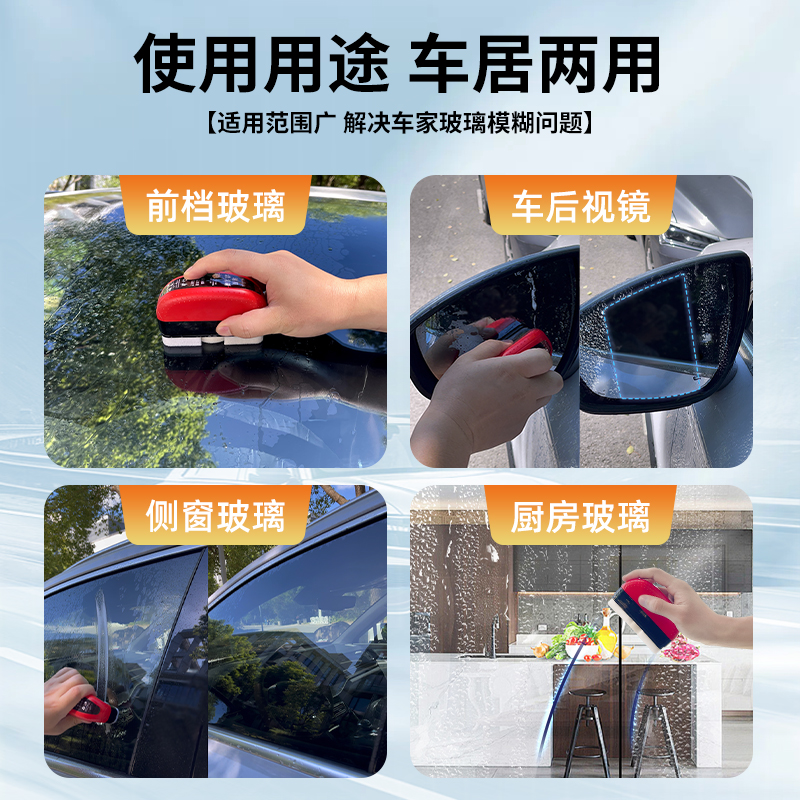 汽车玻璃油膜擦去除强力去污净前挡风侧窗后视镜专用镀膜剂清洁刷