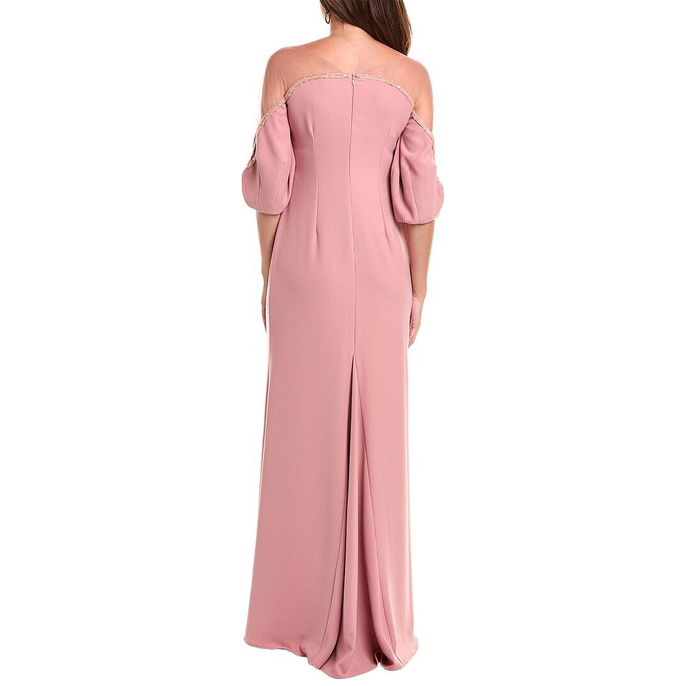 紫缘萱高端舞台演出礼服宴会晚装 粉色拖尾开叉亮片蕾丝气质主持女