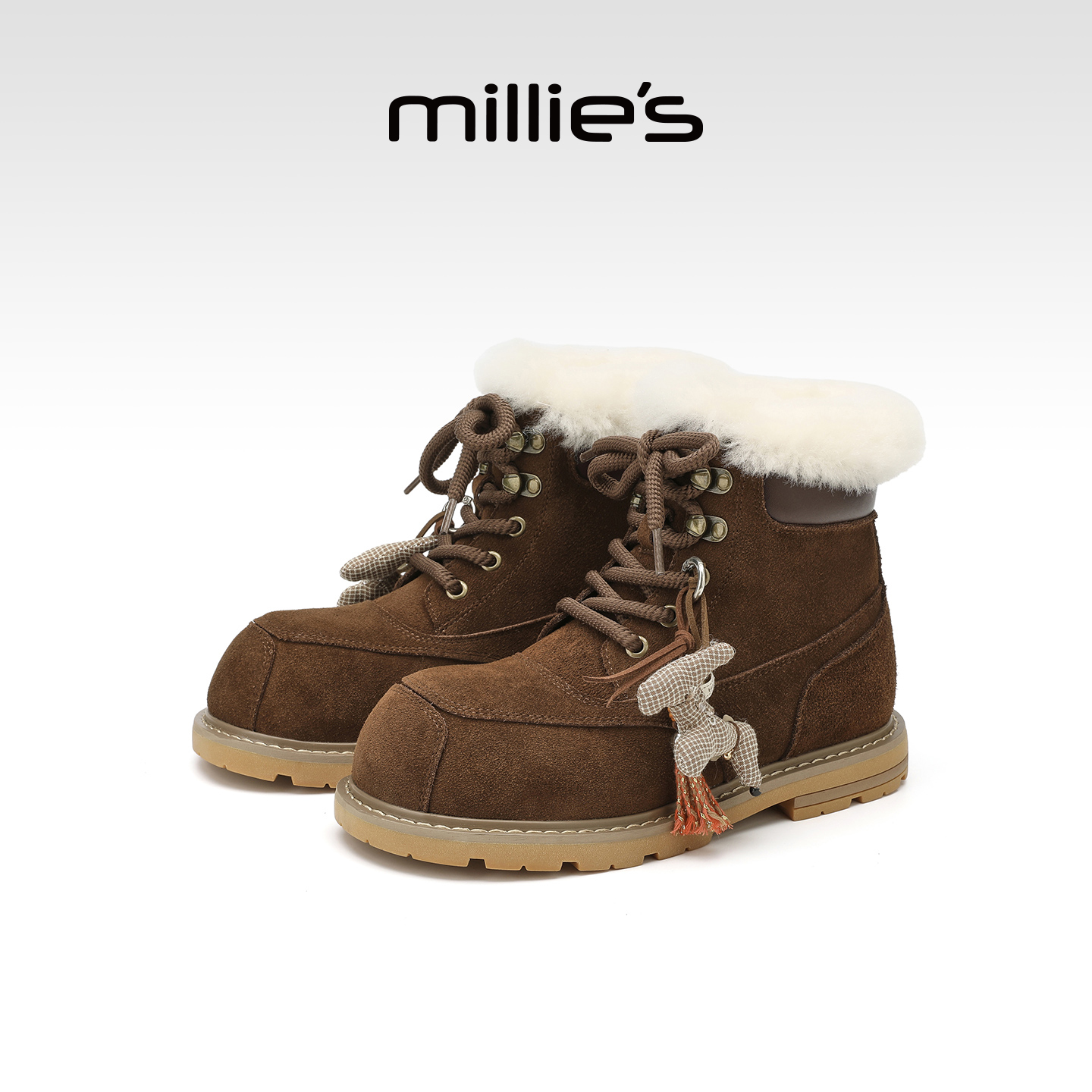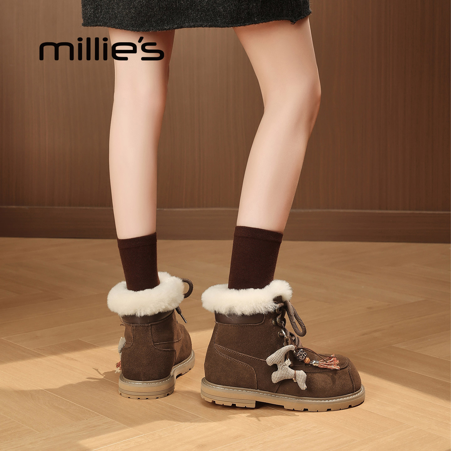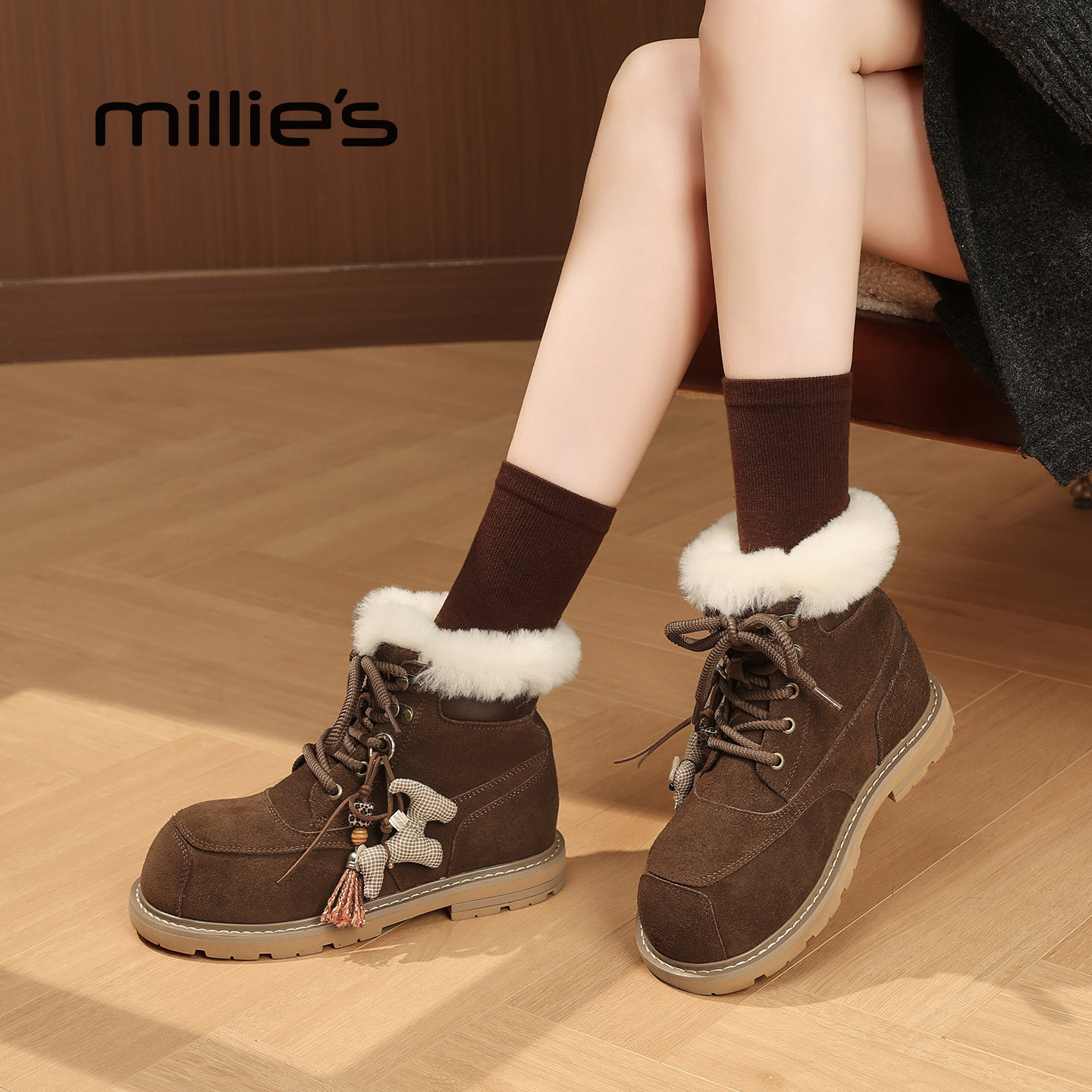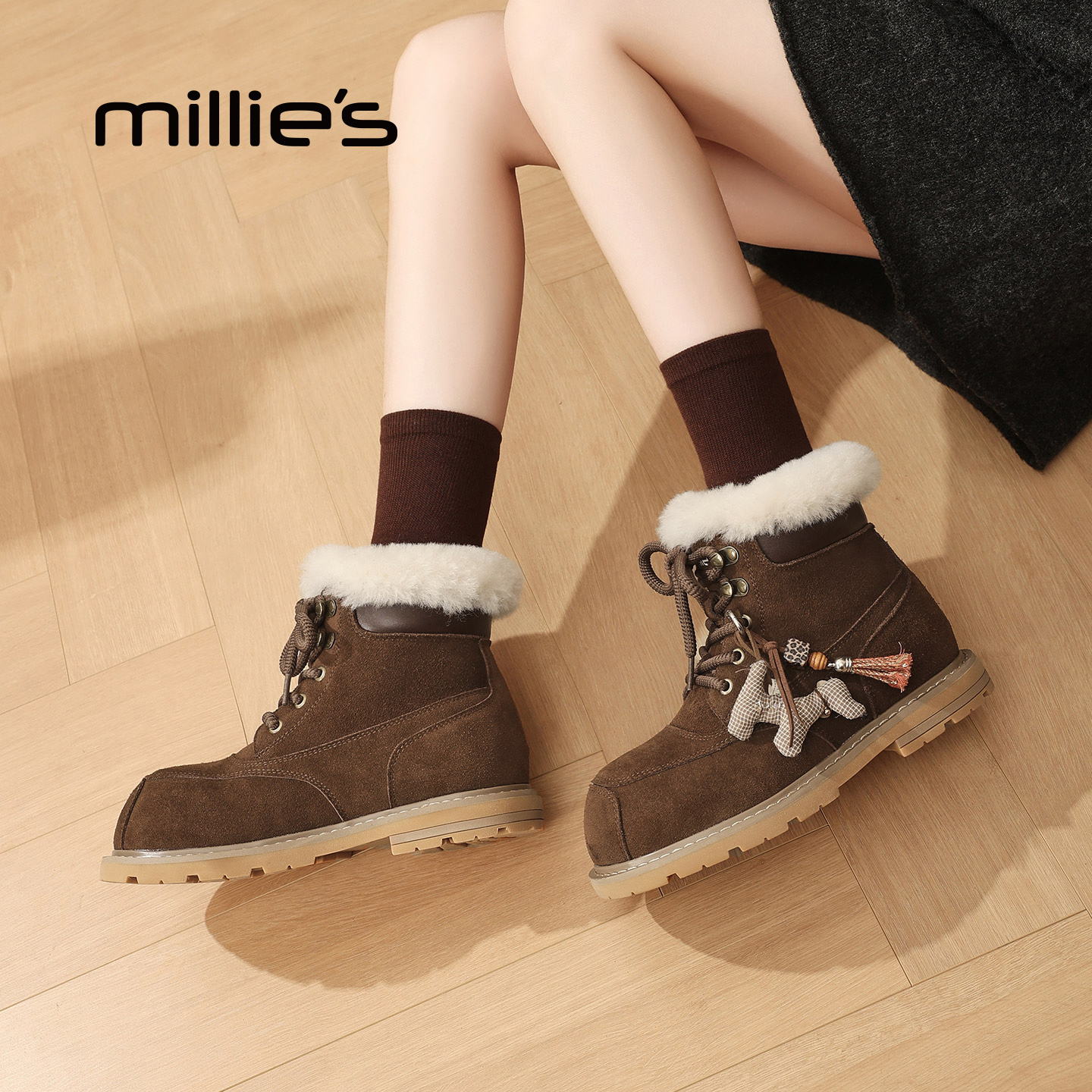 靴瘦瘦靴女鞋 MILLIE 加绒保暖时装 妙丽雪地靴2025秋冬新款