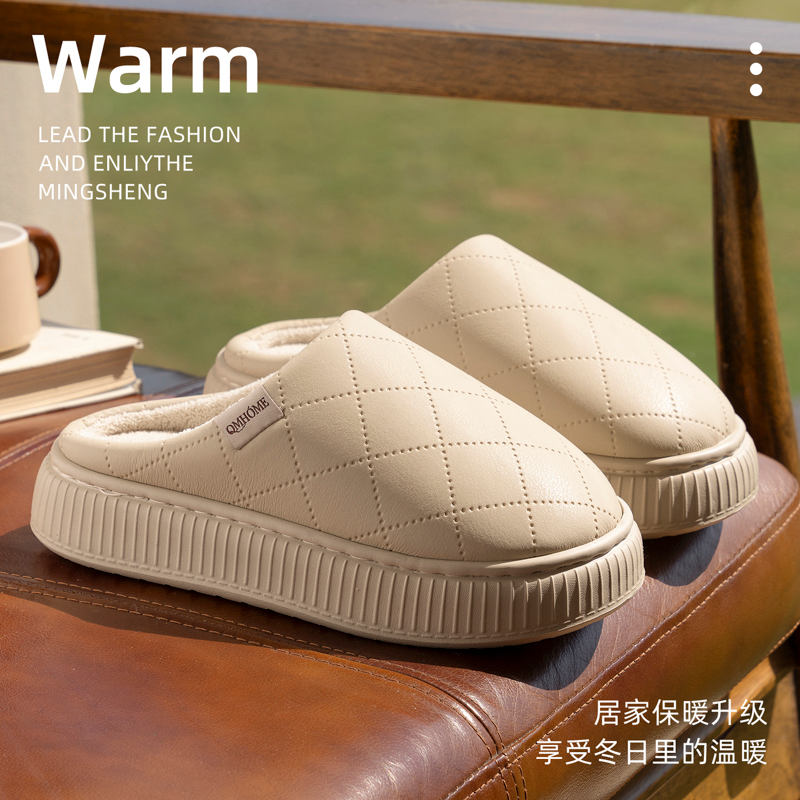 室内家居防滑保暖绒毛棉拖鞋 皮面棉拖居家女款 女 2025新款 奈货冬季
