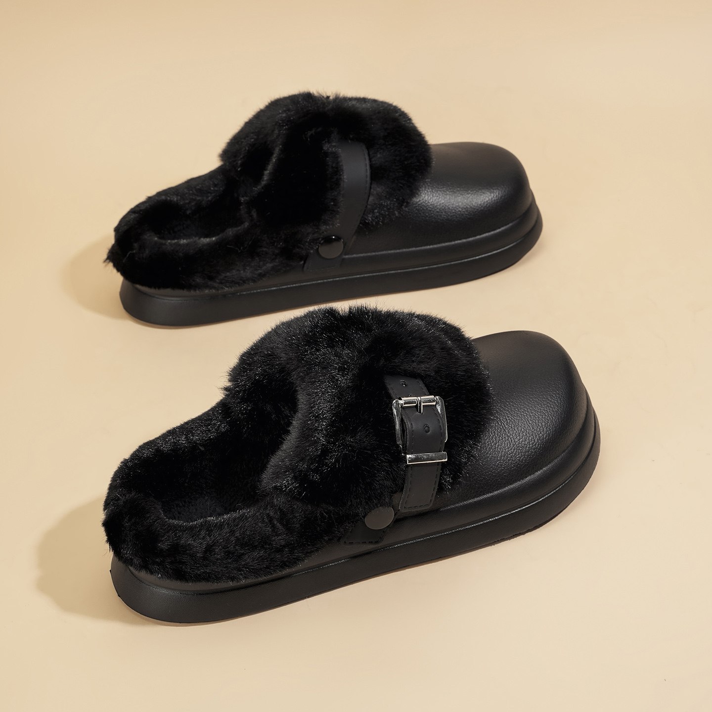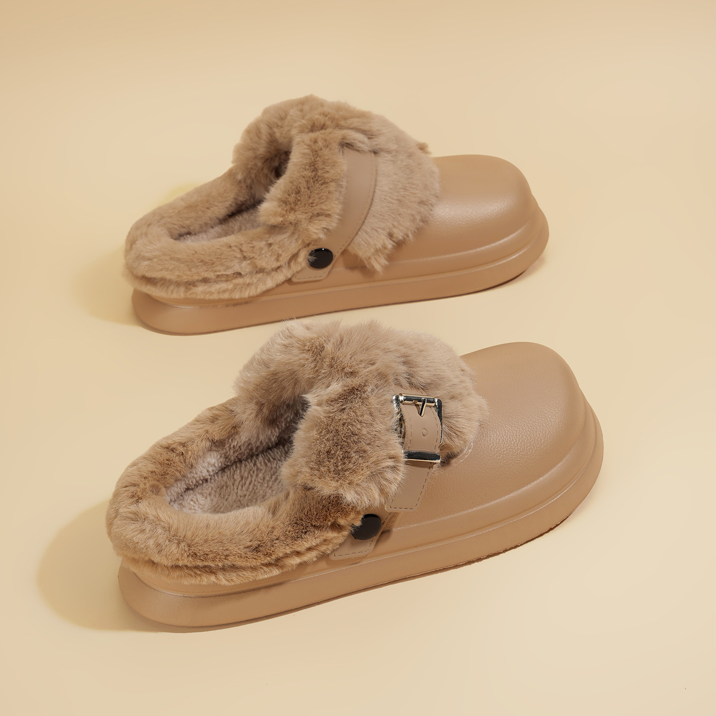 加绒加厚洋气时髦外穿厚底增高室内保暖月子毛毛棉鞋 棉拖鞋 女冬季