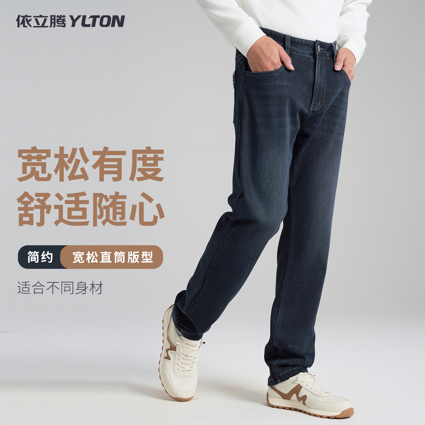 阔腿裤 丹宁原色牛仔裤 新款 2025秋季 子 男宽松直筒加绒加厚休闲男士