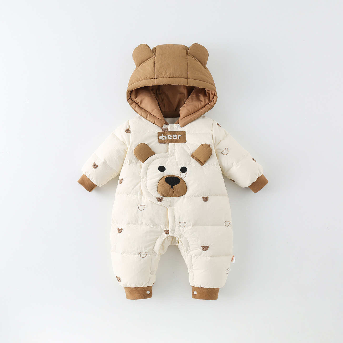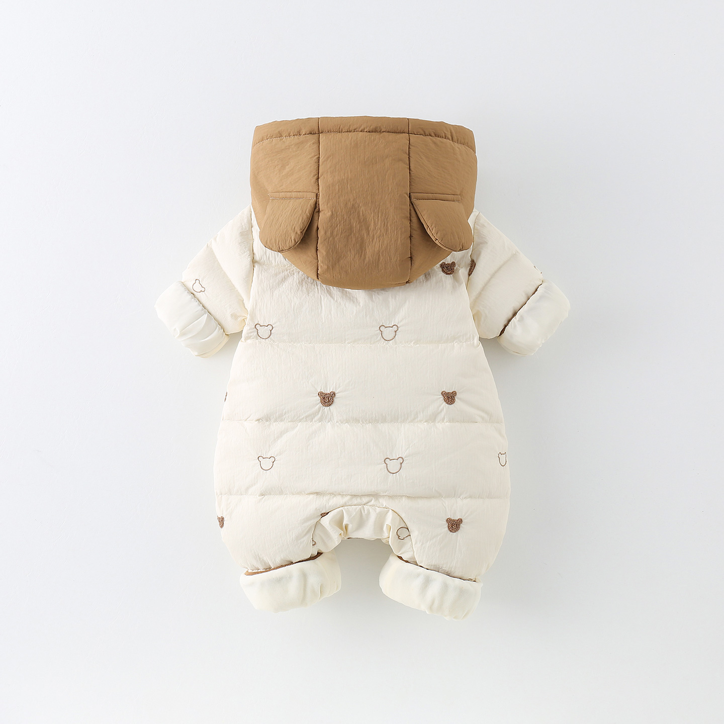 婴儿冬季 夹棉连体衣小月龄男女宝宝卡通超萌满月保暖棉服外出爬服
