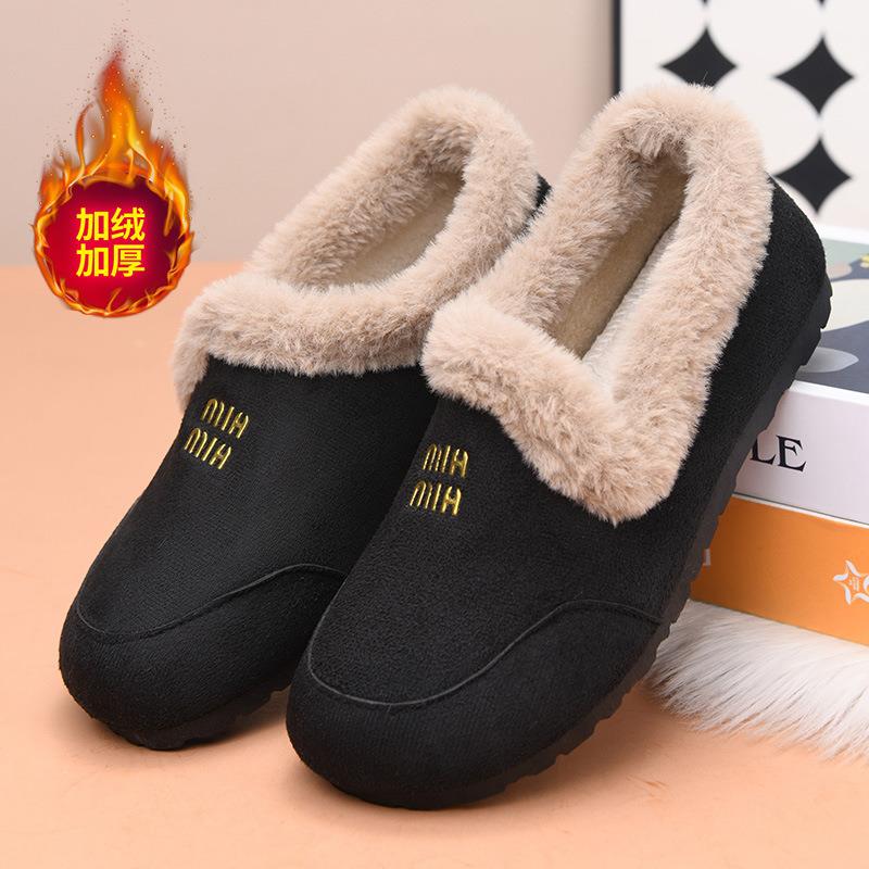 外穿防滑孕妇雪地靴妈妈豆豆鞋 2025新款 女冬季 加绒保暖一脚蹬棉鞋