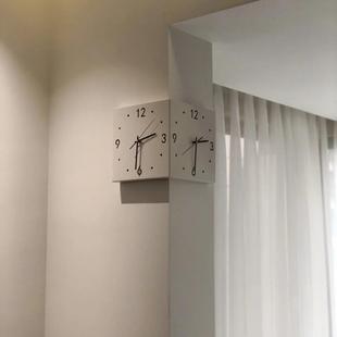 ins风现代转角钟双面挂钟客厅创意简约转角挂钟免打孔时尚 阳角钟