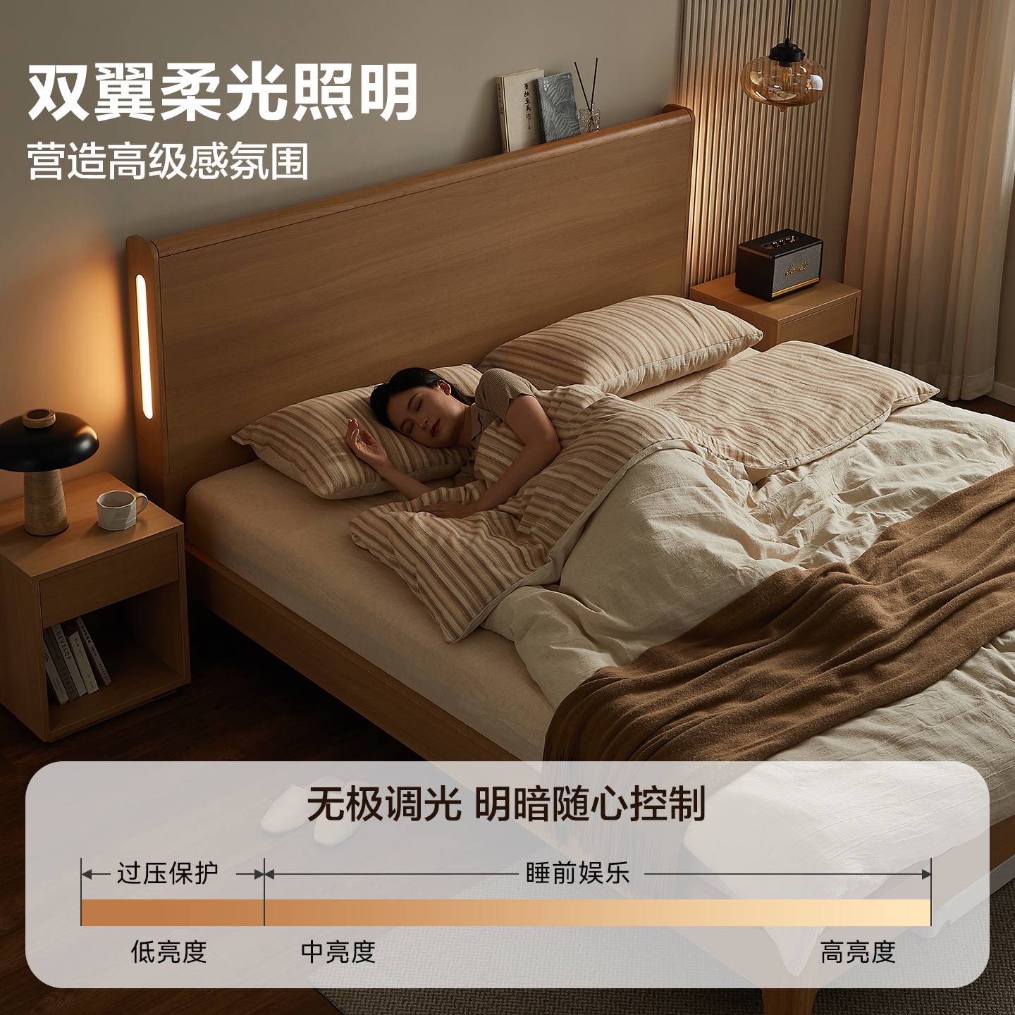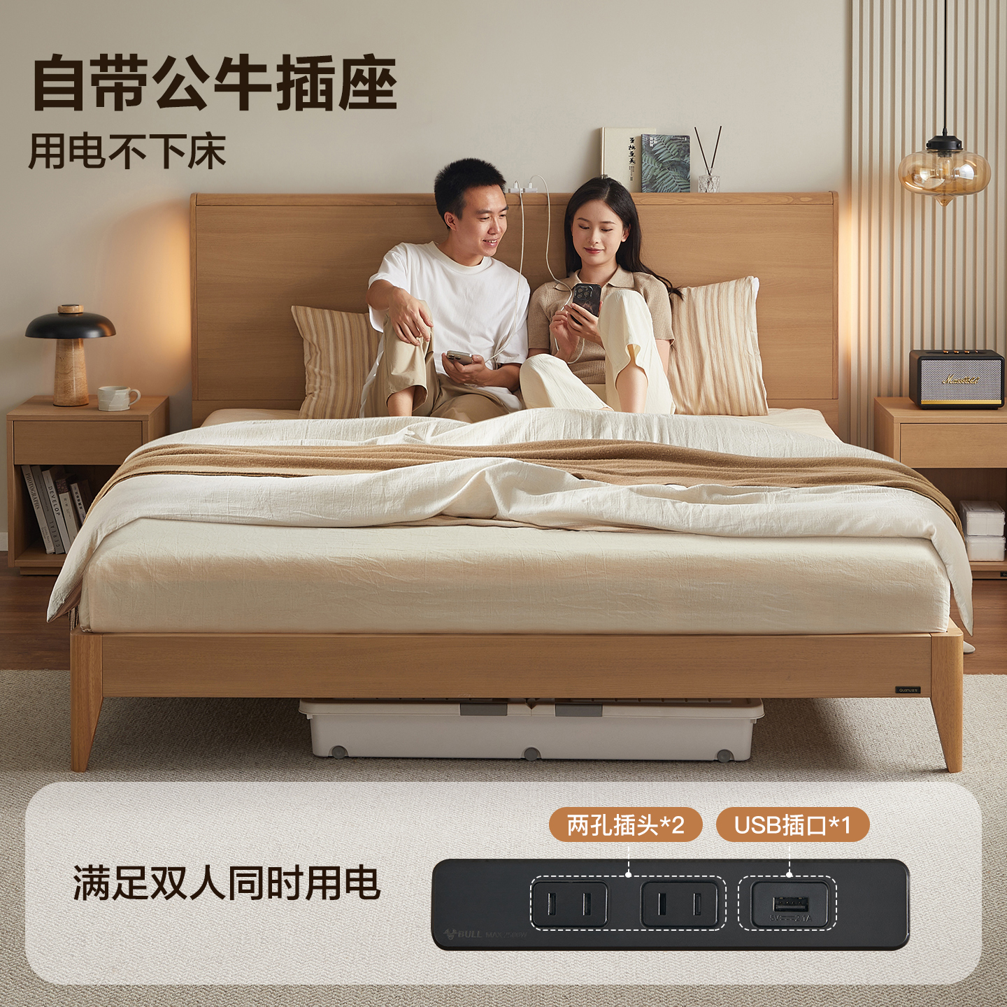 全友家居北欧原木风主卧室大床1米8双人床架2025新款 实木脚家具