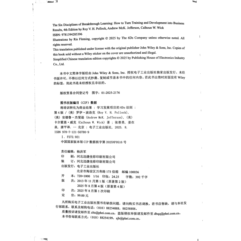 社新华书店正版 将培训转化为商业结果:学习发展项目 电子工业出版 第4版 6Ds法则