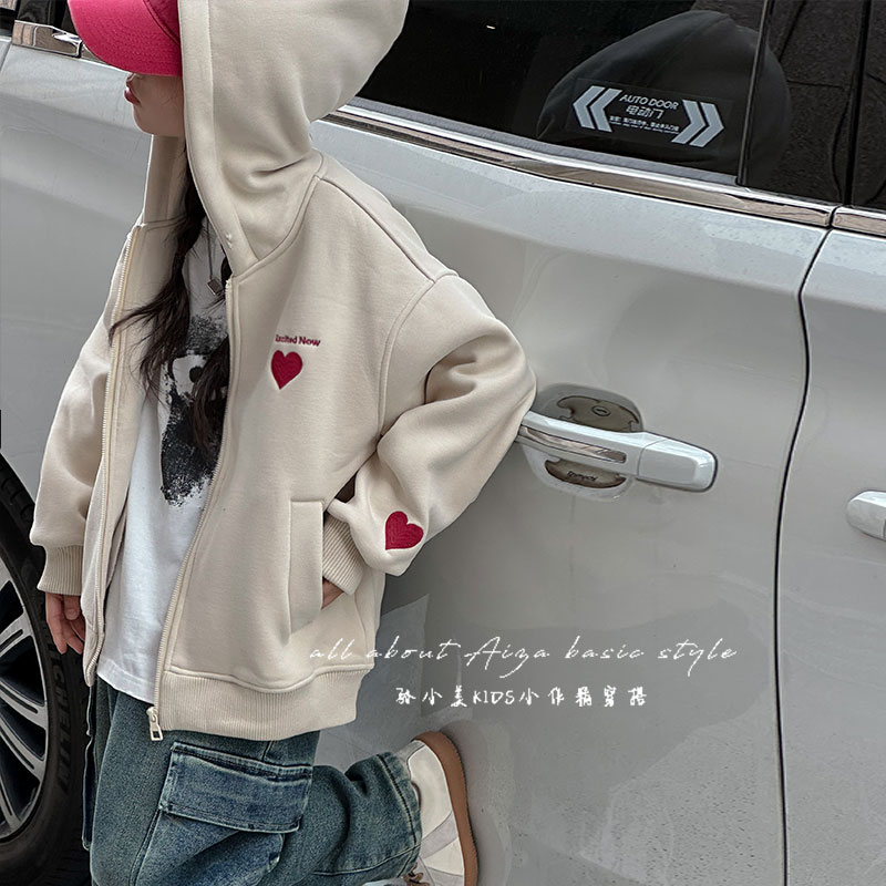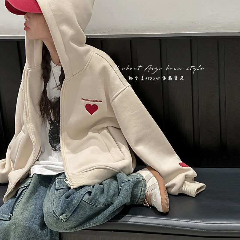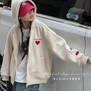 加绒加厚潮 儿童洋气运动连帽上衣秋冬装 女童秋装 卫衣外套2025新款