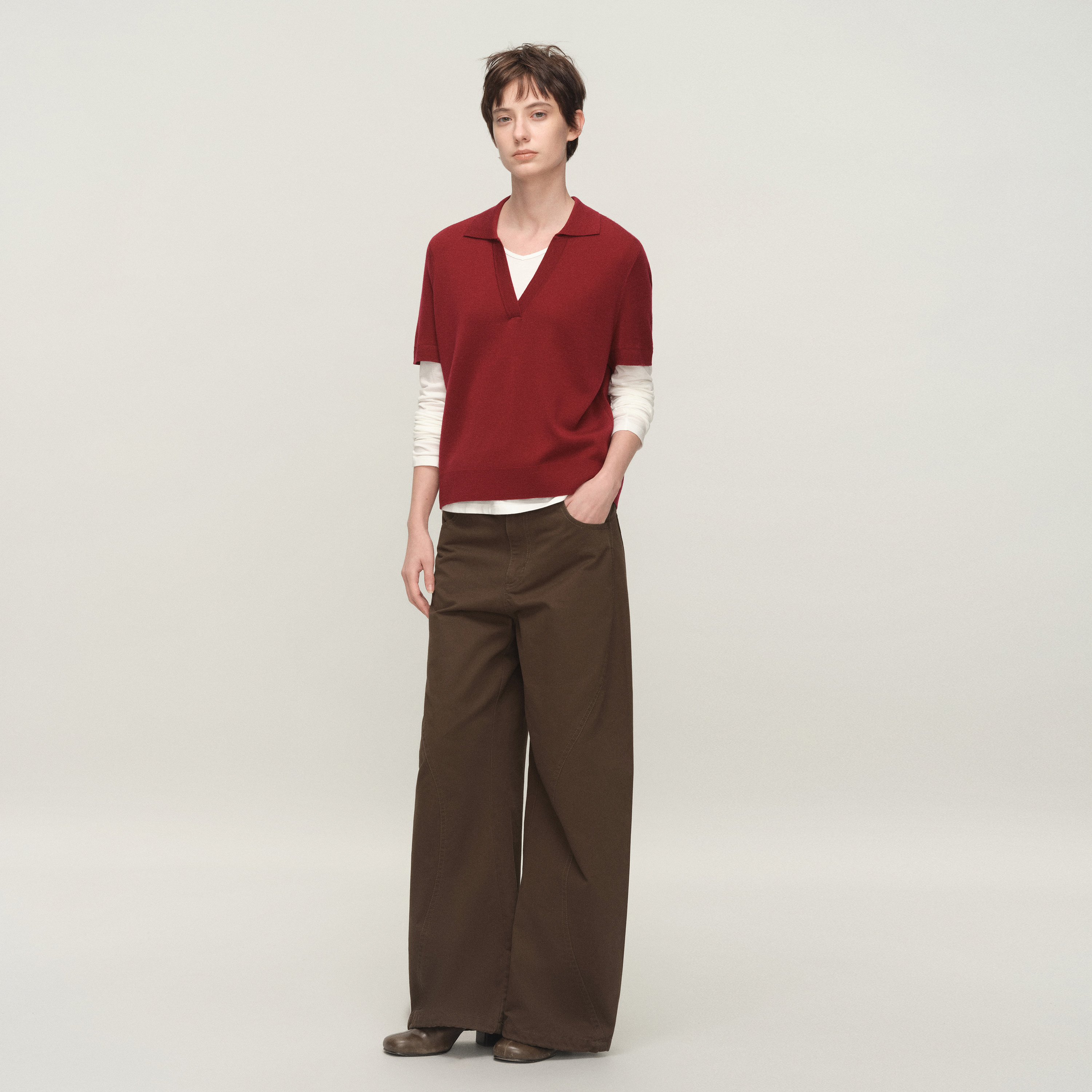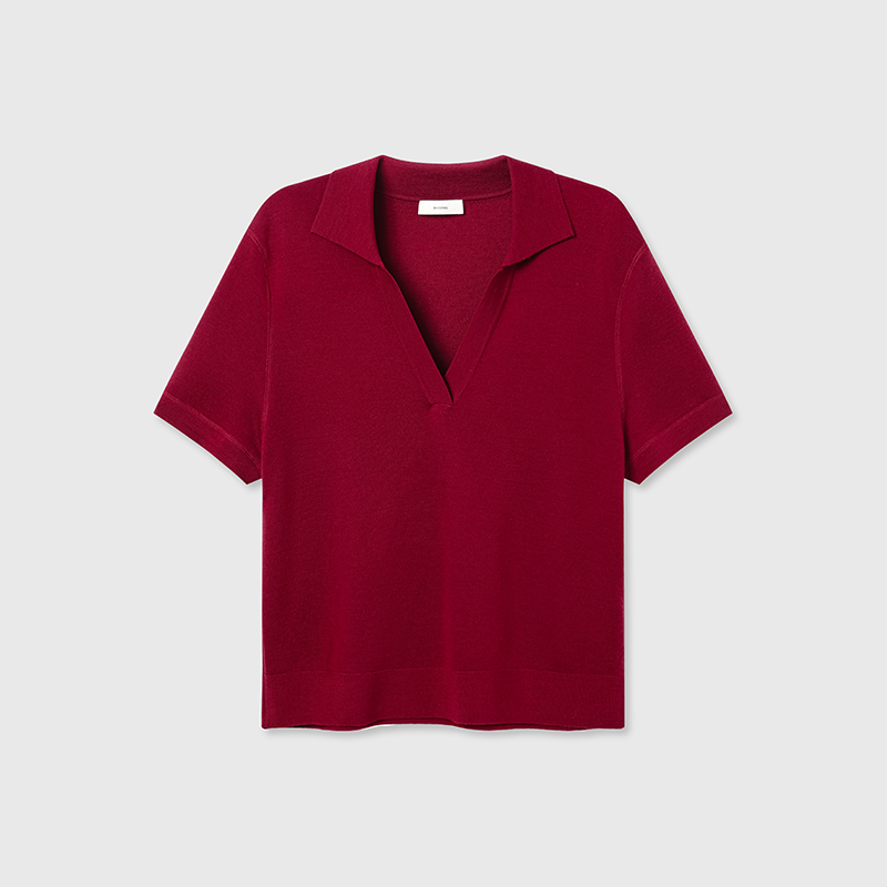 上衣55345 新款 白弓100%绵羊毛设计感复古polo领短袖 毛衣女秋冬季