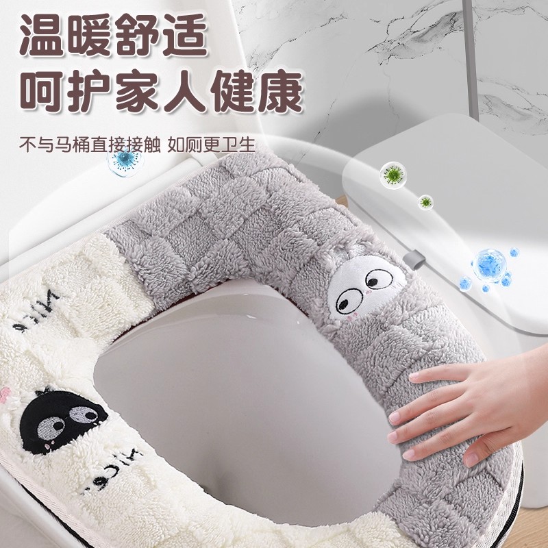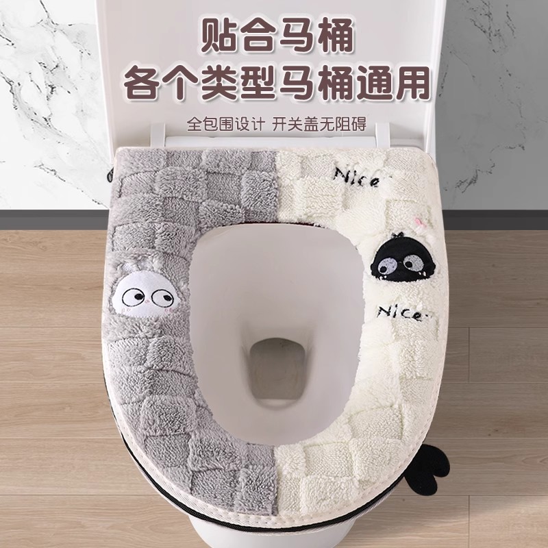 马桶坐垫冬季 保暖加绒加厚耐脏防水防滑隔脏可水洗坐便器毛绒垫子