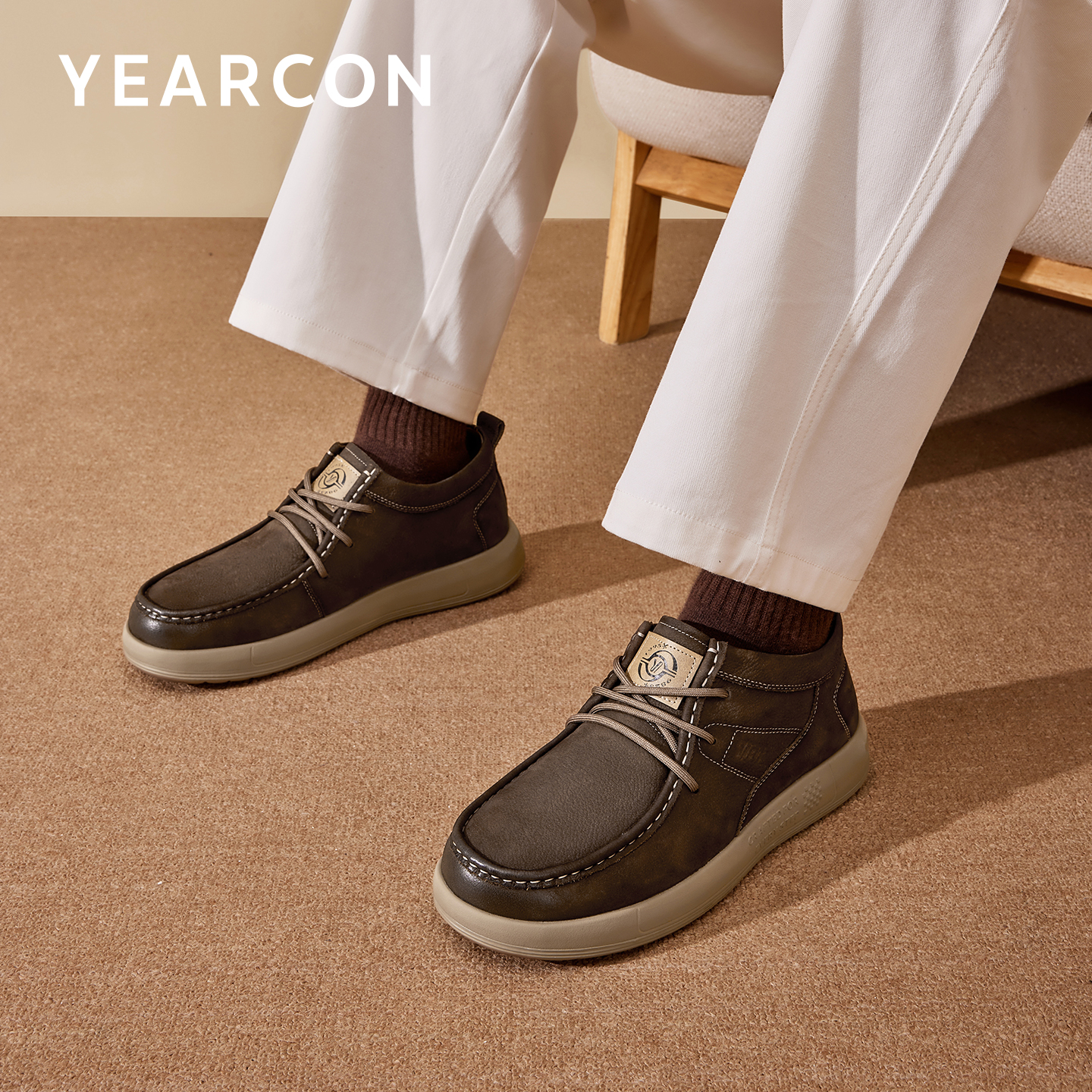 靴子 真皮防水厚底增高工装 森马马丁靴男秋季 高帮百搭休闲白色板鞋