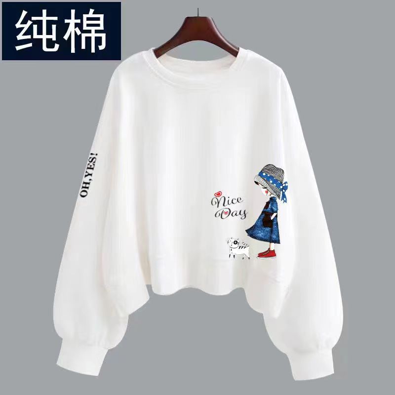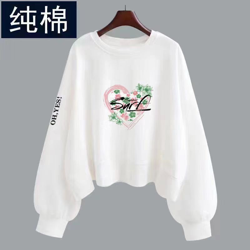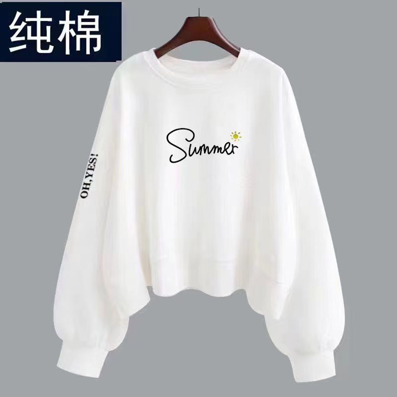 春秋全棉大码 100%纯棉女士长袖 打底衫 上衣女小个子短款 卫衣秋款