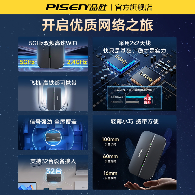 哪个牌子好高速wifi6超强信号多功能车载 fi便携式 品胜随身wifi移动无线网络2025新款 无限速全国通用流量wi