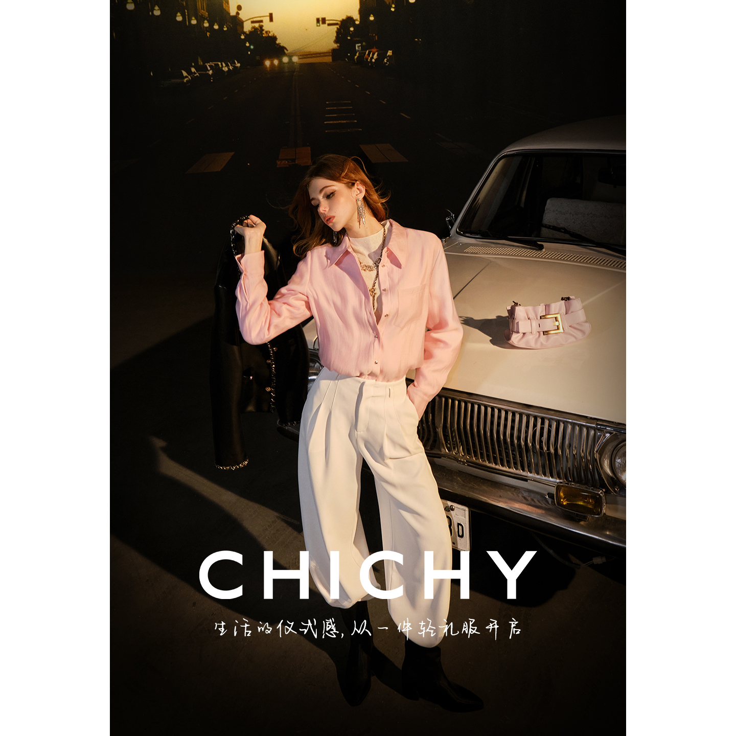 上衣 宽松百搭长袖 CHICHY洋气减龄粉色磨毛加绒衬衫 女2025秋冬新款