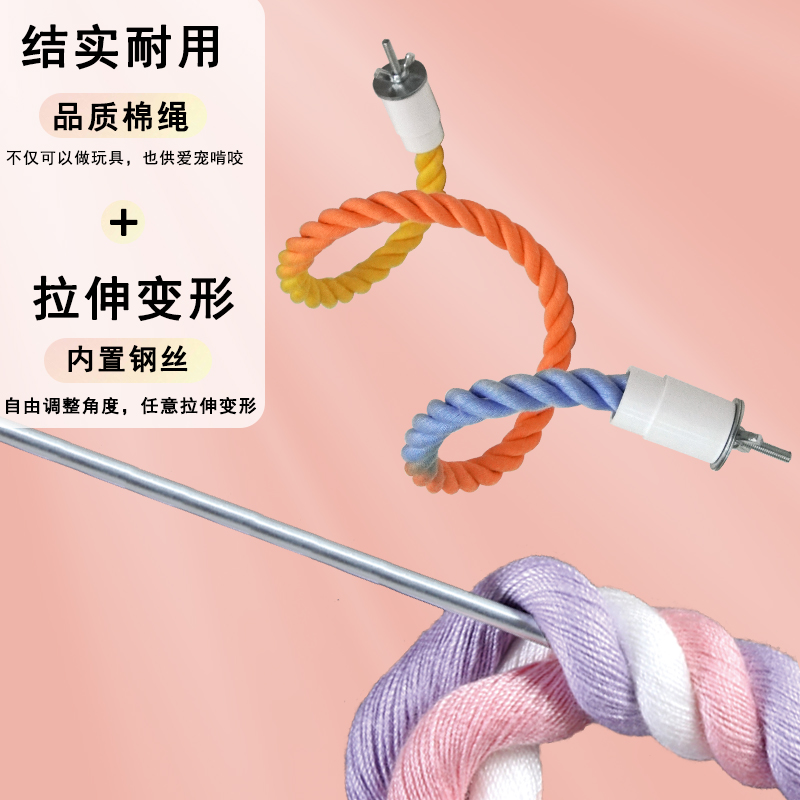 鹦鹉攀爬杆渐变棉绳架虎皮牡丹玄凤秋千玩具站杆鸟笼造景装 饰配件