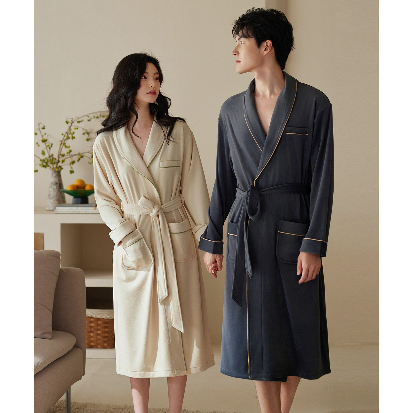 情侣睡袍女冬季 秋冬海岛绒浴衣家居服 珊瑚绒加厚加绒浴袍睡衣男士