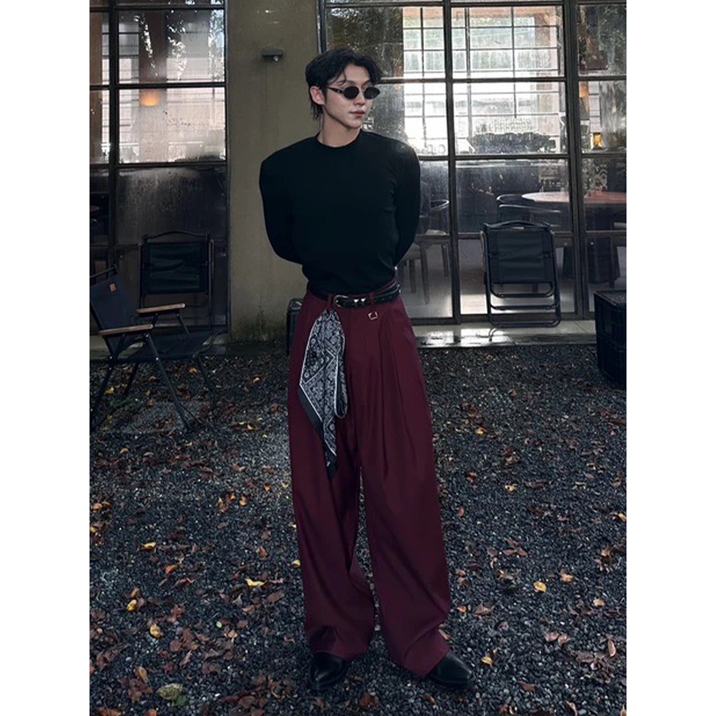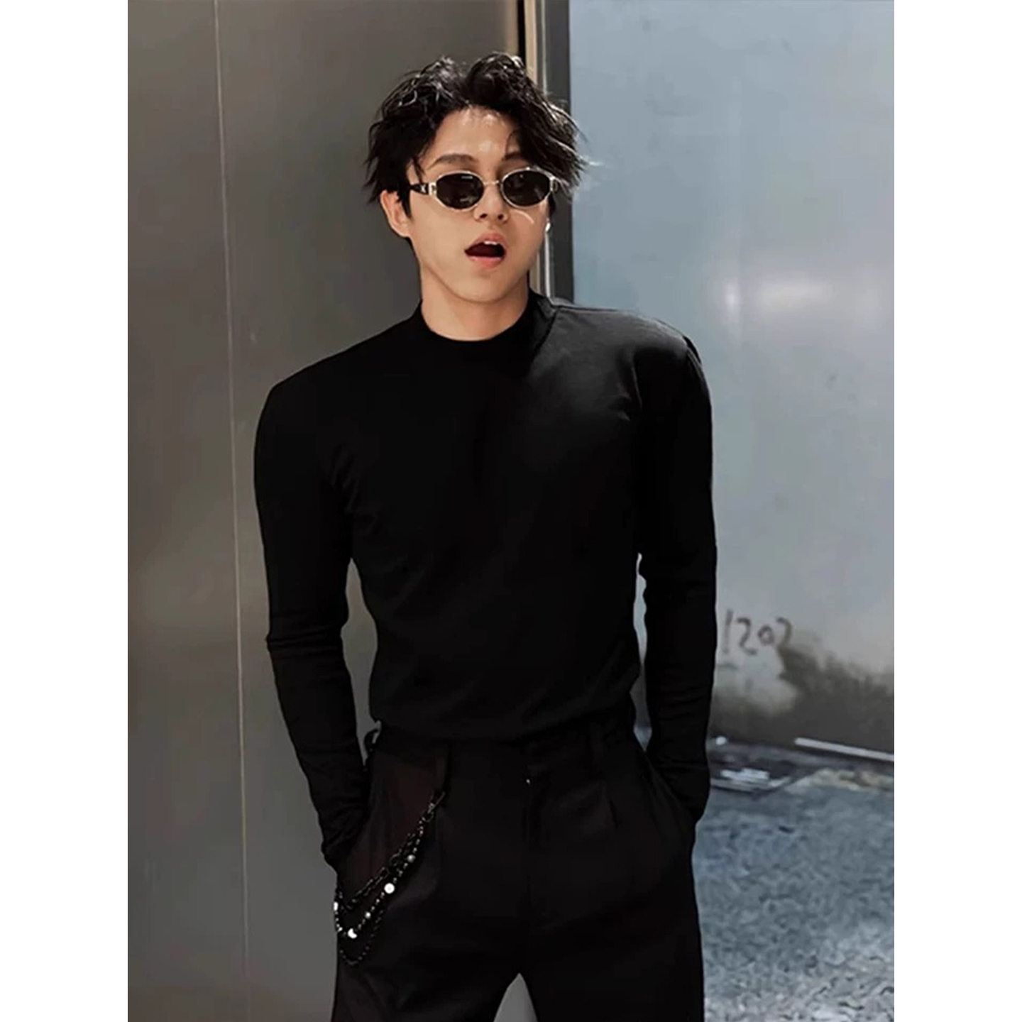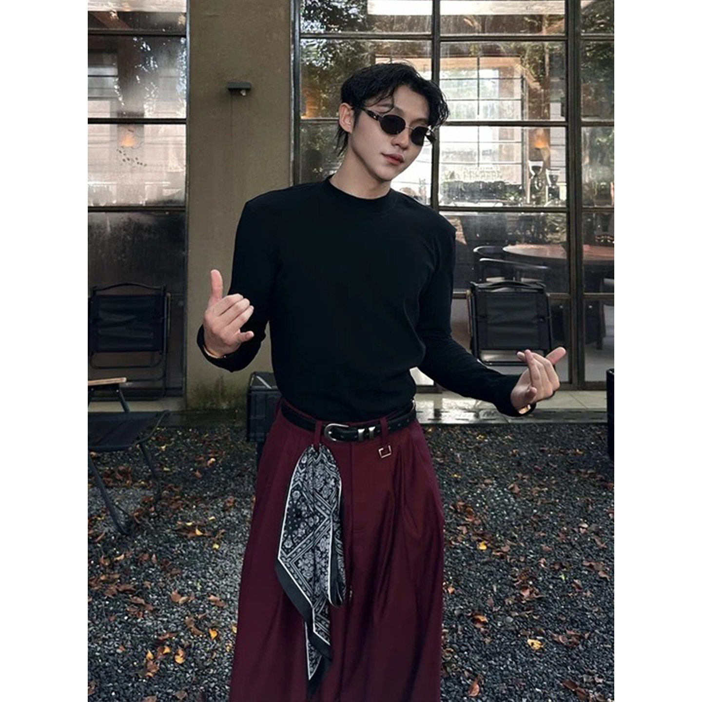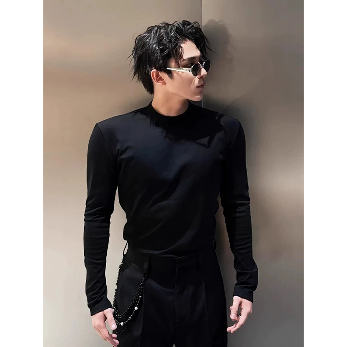 高级感气质上衣 潮牌痞帅内搭打底衫 320g黑色正肩长袖 t恤男生秋季