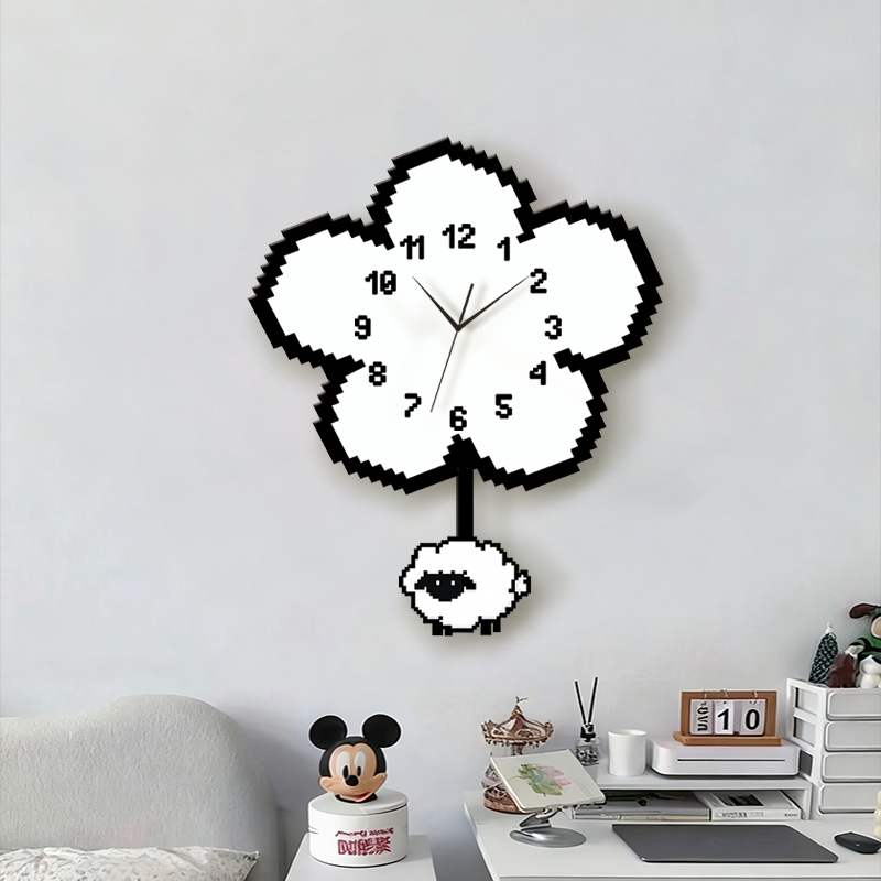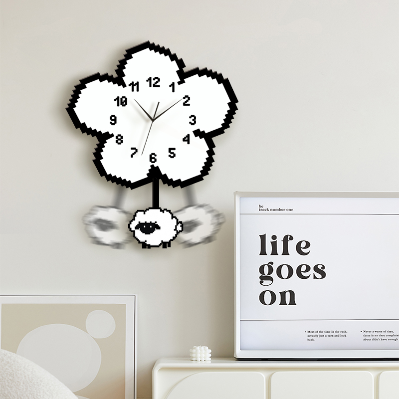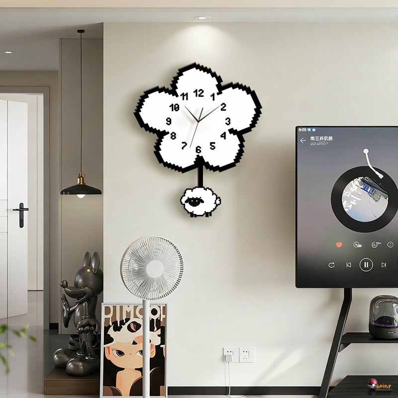 2025新款 饰时钟挂墙表 客厅挂钟创意马赛克静音钟表带摇摆背景墙装