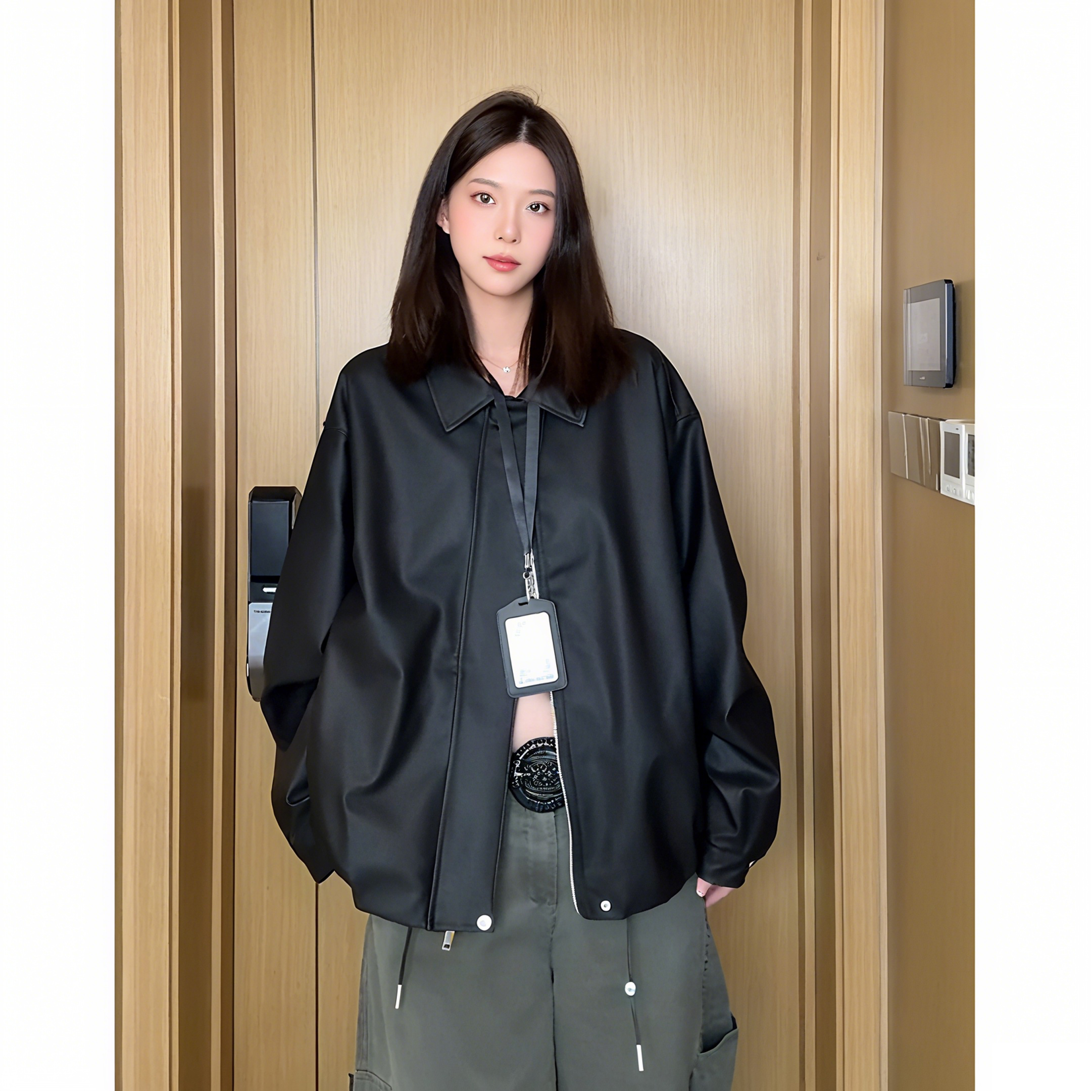 棒球机车服 复古飞行员皮夹克短款 cleanfit黑色皮衣外套男秋季 美式