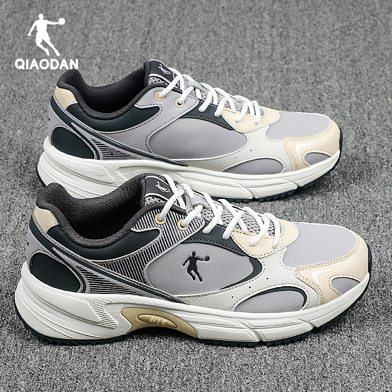 男鞋 防水减震跑步鞋 2025秋季 皮面休闲黑色老爹鞋 男 新款 乔丹运动鞋