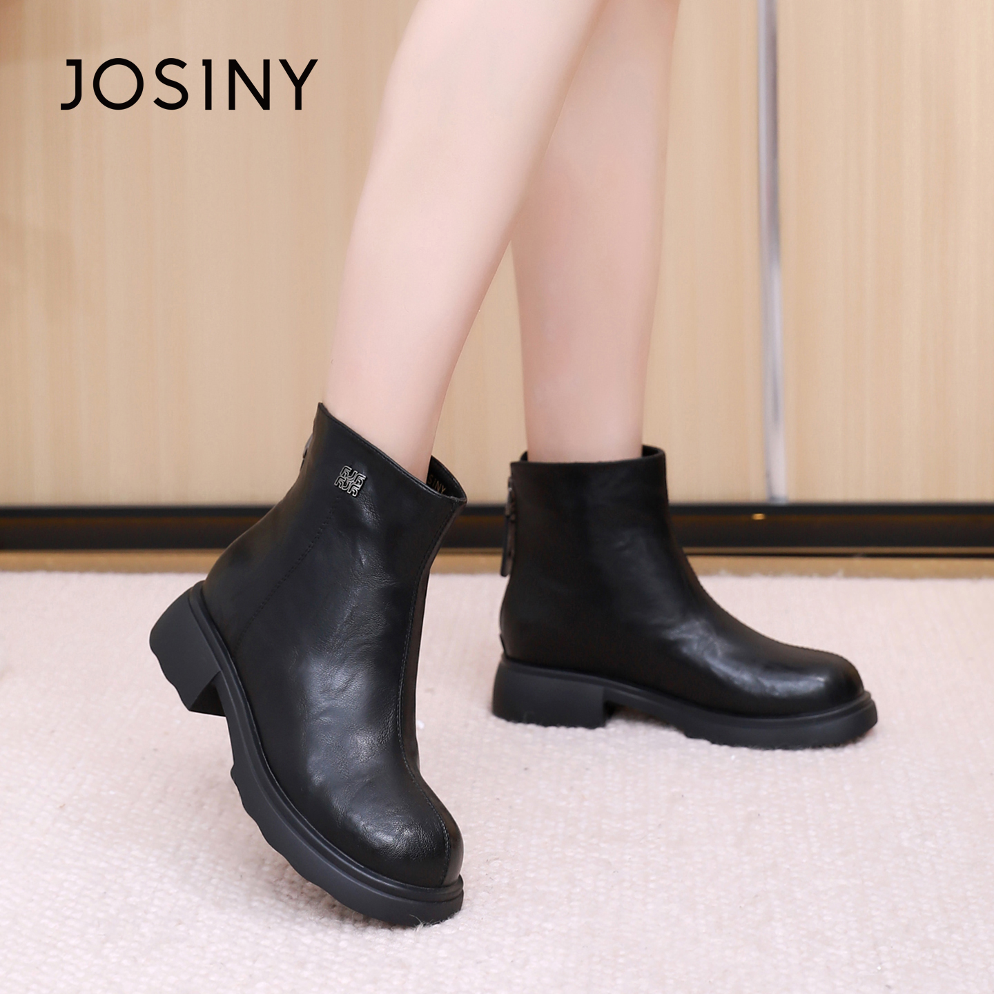 卓诗尼2025秋冬新款 舒适显瘦女靴 后拉链马丁靴女潮流气质短靴时尚
