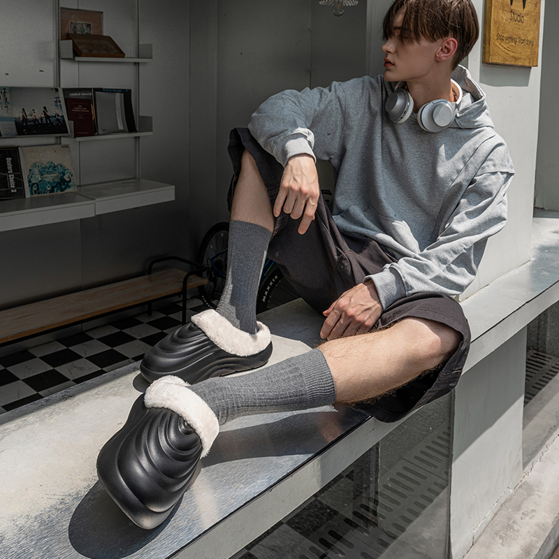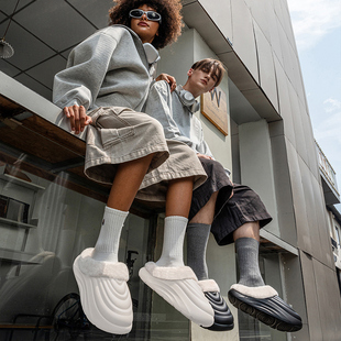 包头男款 一脚蹬运动户外棉鞋 半包秋季 亚束破茧棉拖外穿女厚底拖鞋