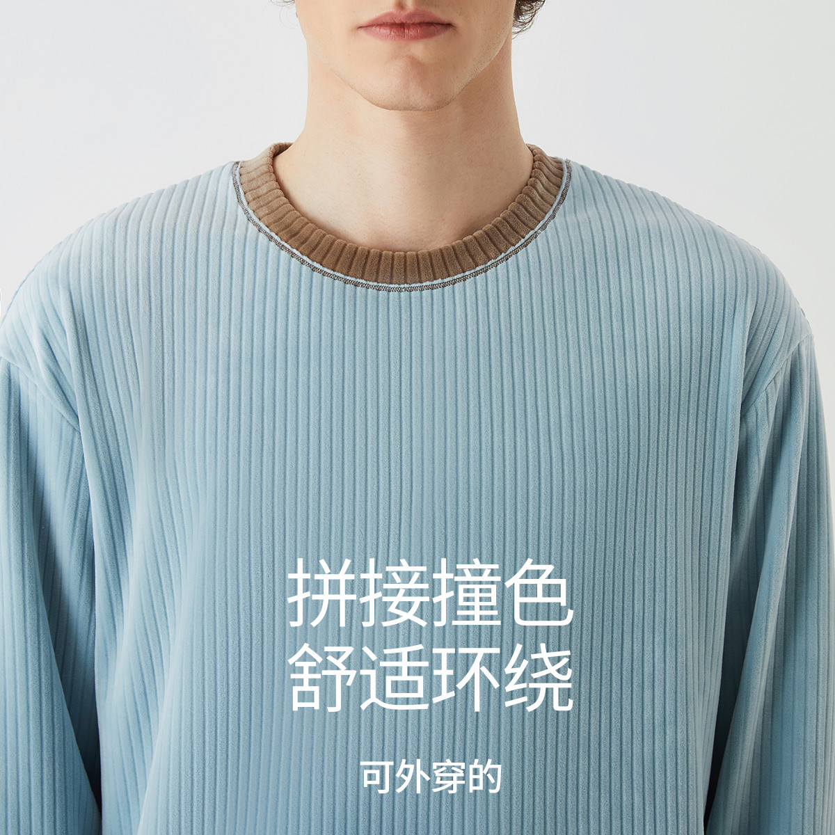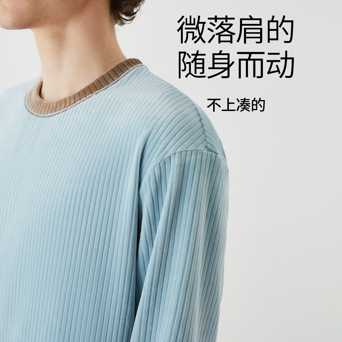 淳度男士 睡衣秋冬加厚加绒圆领珊瑚绒休闲家居服高级感套装