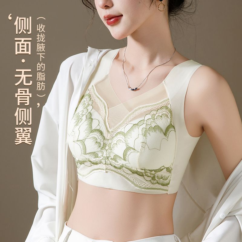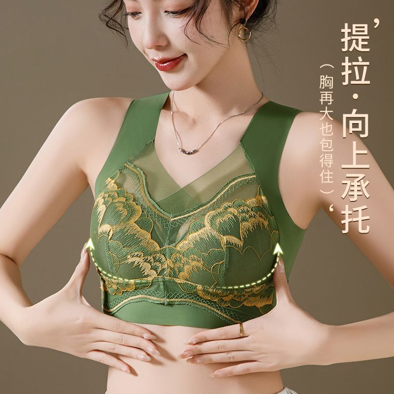 高档蕾一体式 内衣聚拢舒适防下垂上托文胸女冰丝无钢圈胸罩固定