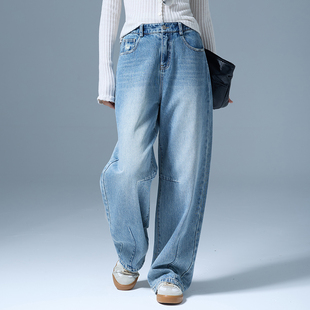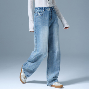 高腰显瘦弹力加绒宽松直筒拖地裤 丹宁蓝阔腿牛仔裤 女秋冬2025新款