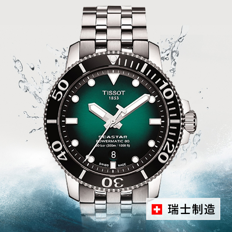自动机械表手表夜光男表潜水表 Tissot天梭海星系列男士 自营