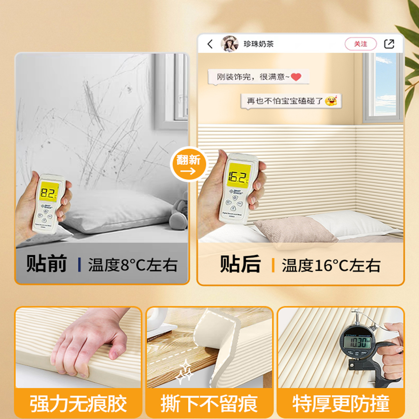 防撞泡沫海绵墙贴婴儿床头墙壁墙面隔凉保暖靠软垫榻榻米软包墙围