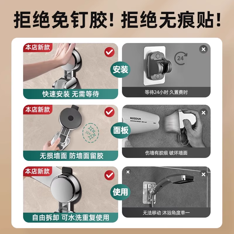 吸盘花洒支架免打孔固定神器淋浴喷头支架浴室儿童挂钩可移动调节