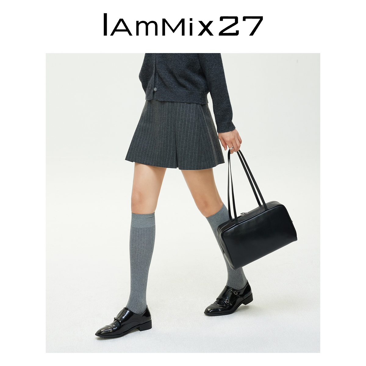 裙女秋冬半身裙高腰休闲大摆a字过膝中长裙 STYLE灰色百褶西装